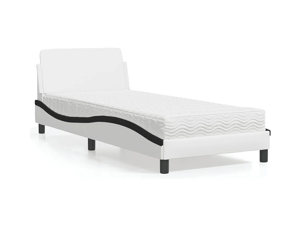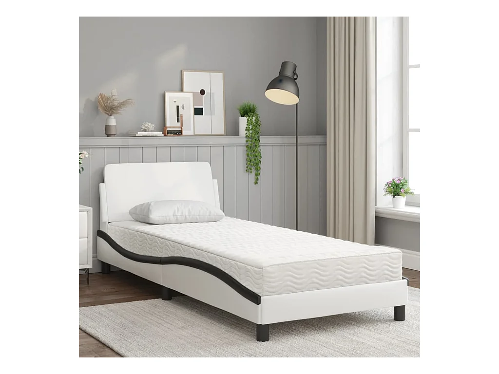 Cama 90x200 cm con colchón cuero sintético blanco y negro ES862381