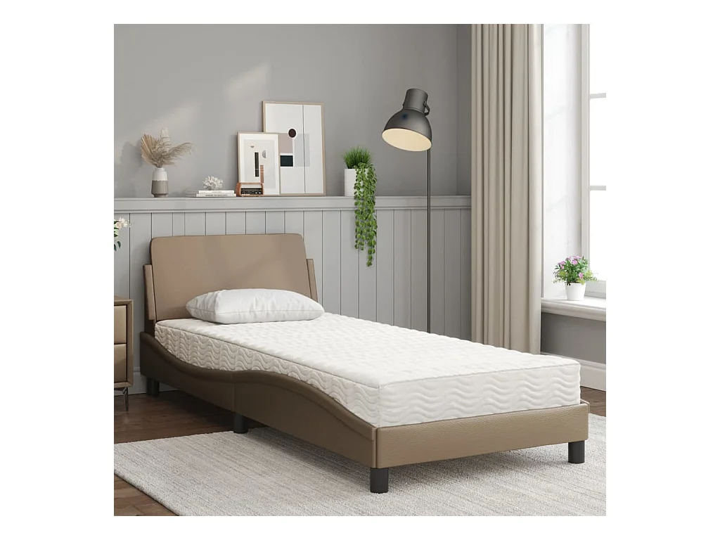 Cama 90x200 cm con colchón cuero sintético capuchino ES663730