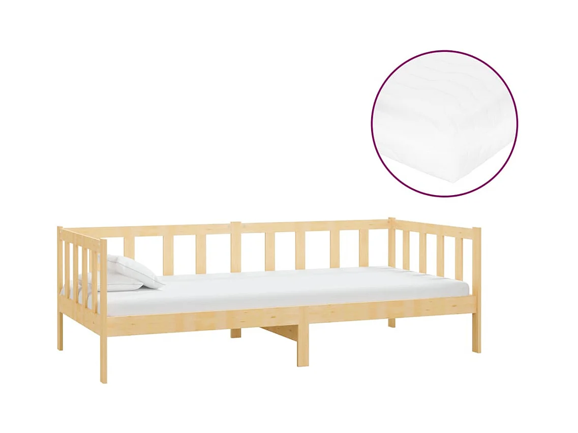 Cama -90x200 cm con colchón madera de pino maciza YOE11136