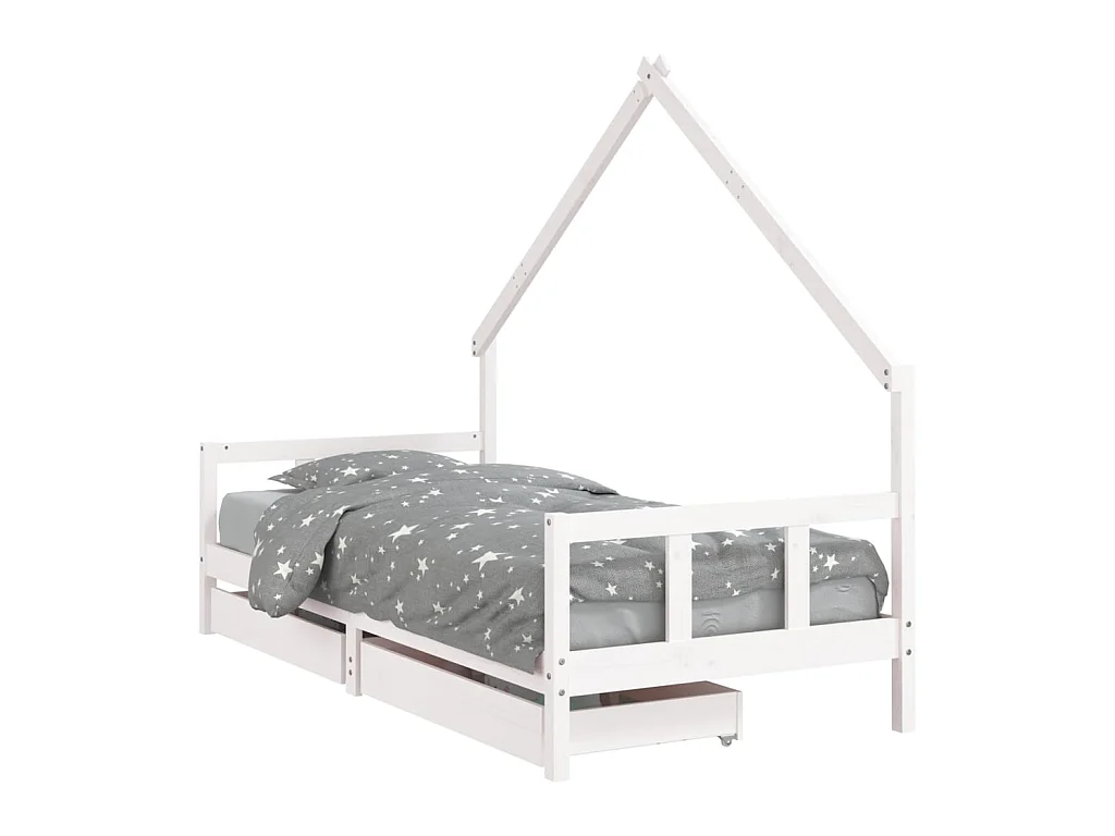 Cama 90x200 cm niños con cajones madera pino blanco ES37701