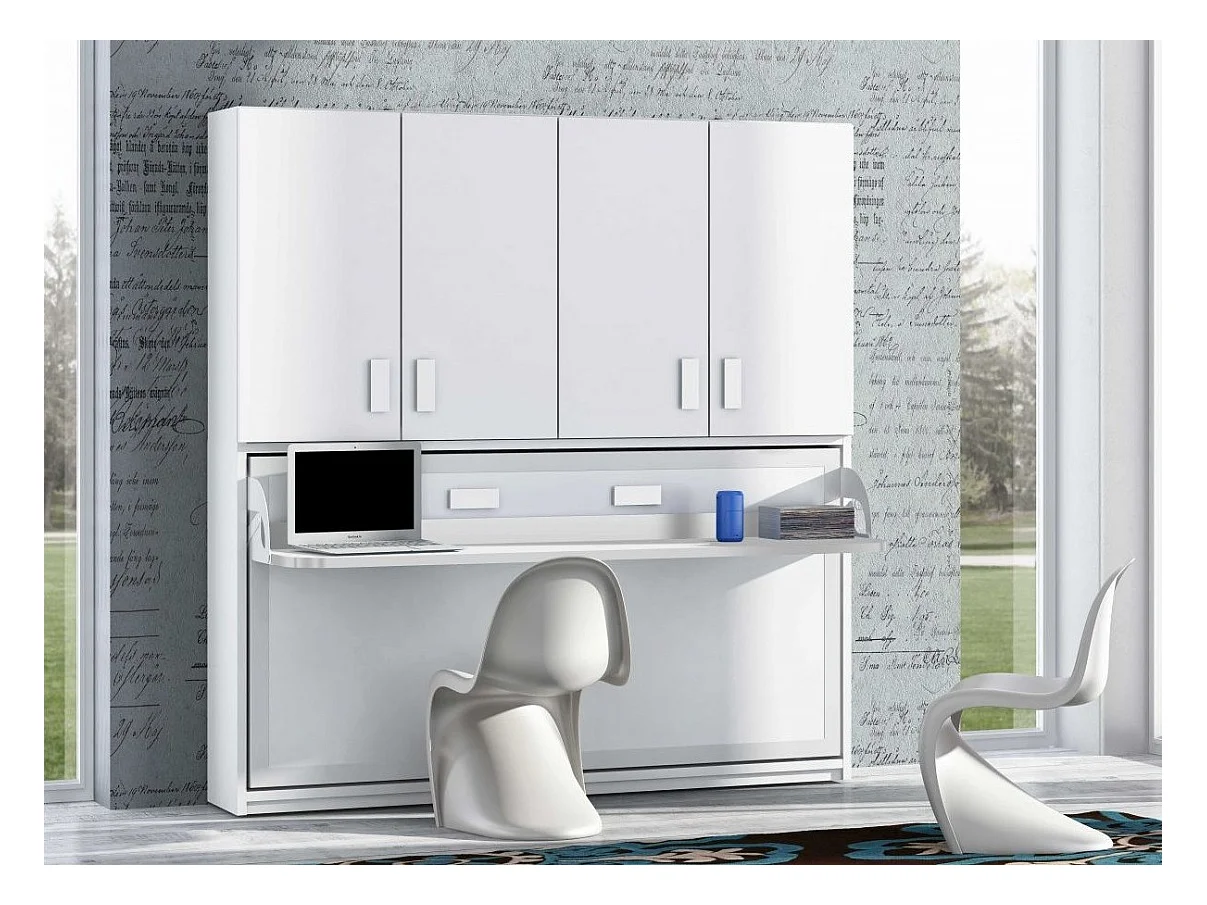 Cama abatible con escritorio 140x190 blanco satinado P 35 Kinoa