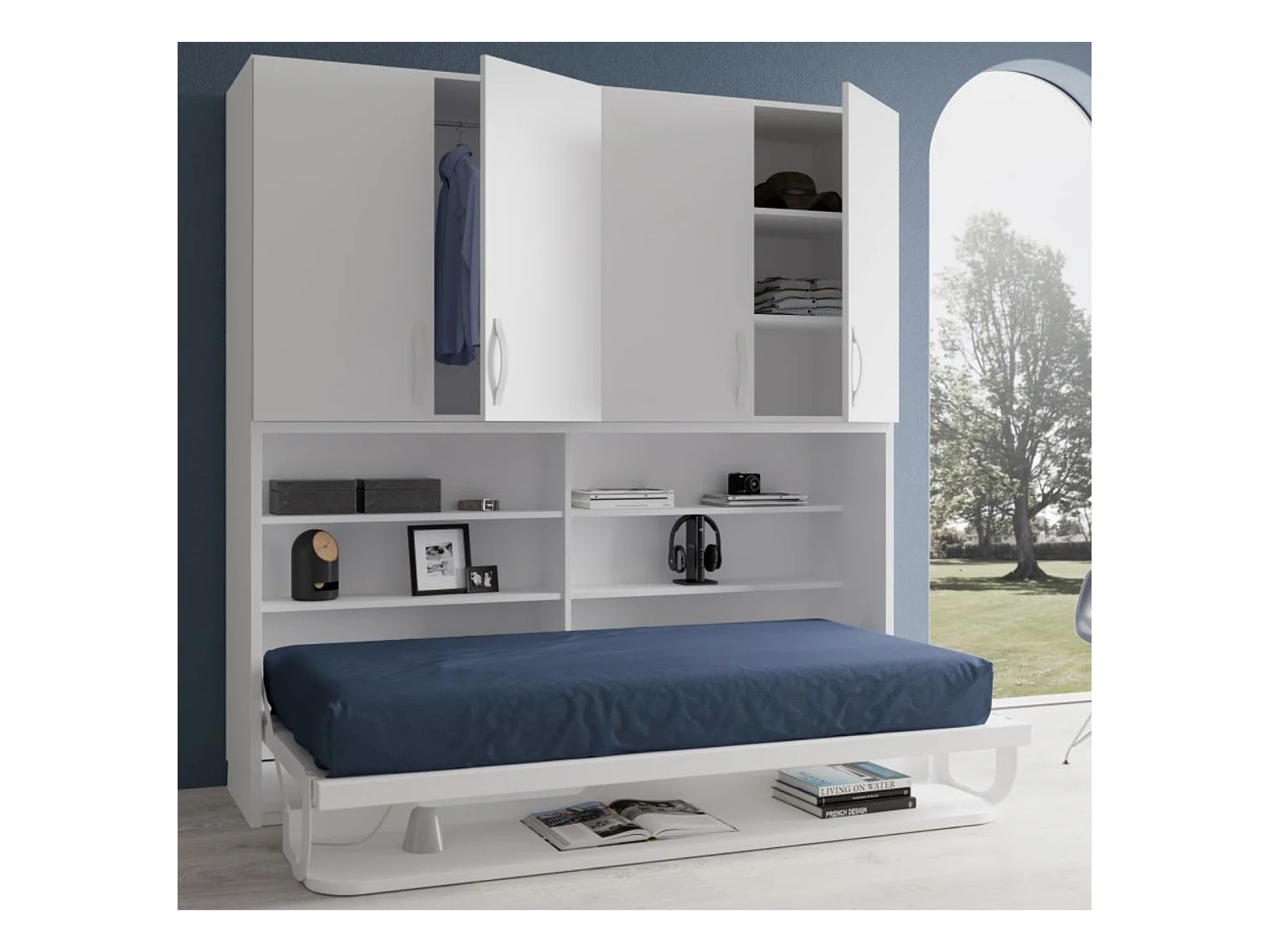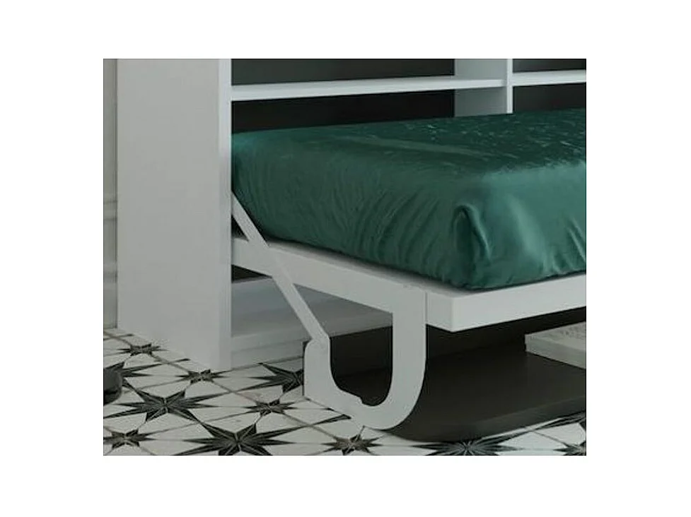 Cama abatible horizontal 90x190 Angelina Alta gama-Con colchón-Encofrado Blanco-Frente Vintage