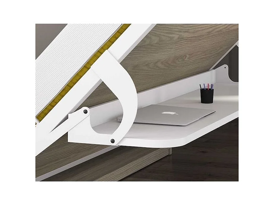 Cama plegable con escritorio 90x190 roble claro D 35 cm Kinoa-Con colchón