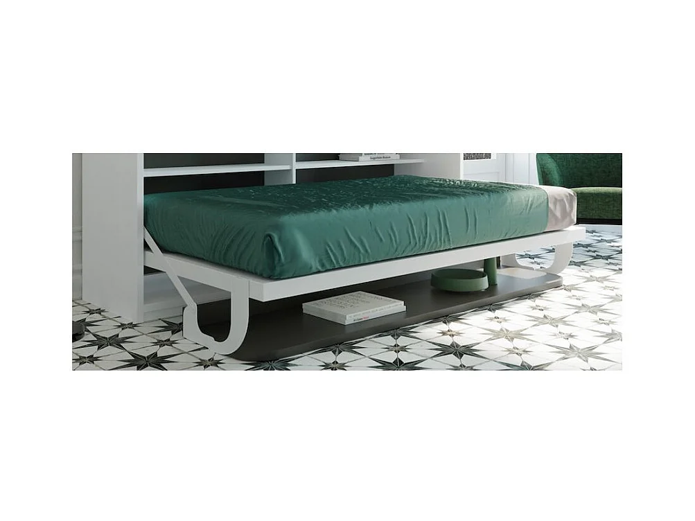 Cama abatible horizontal 90x190 Angelina Alta gama-Con colchón-Encofrado Blanco-Frente Vintage