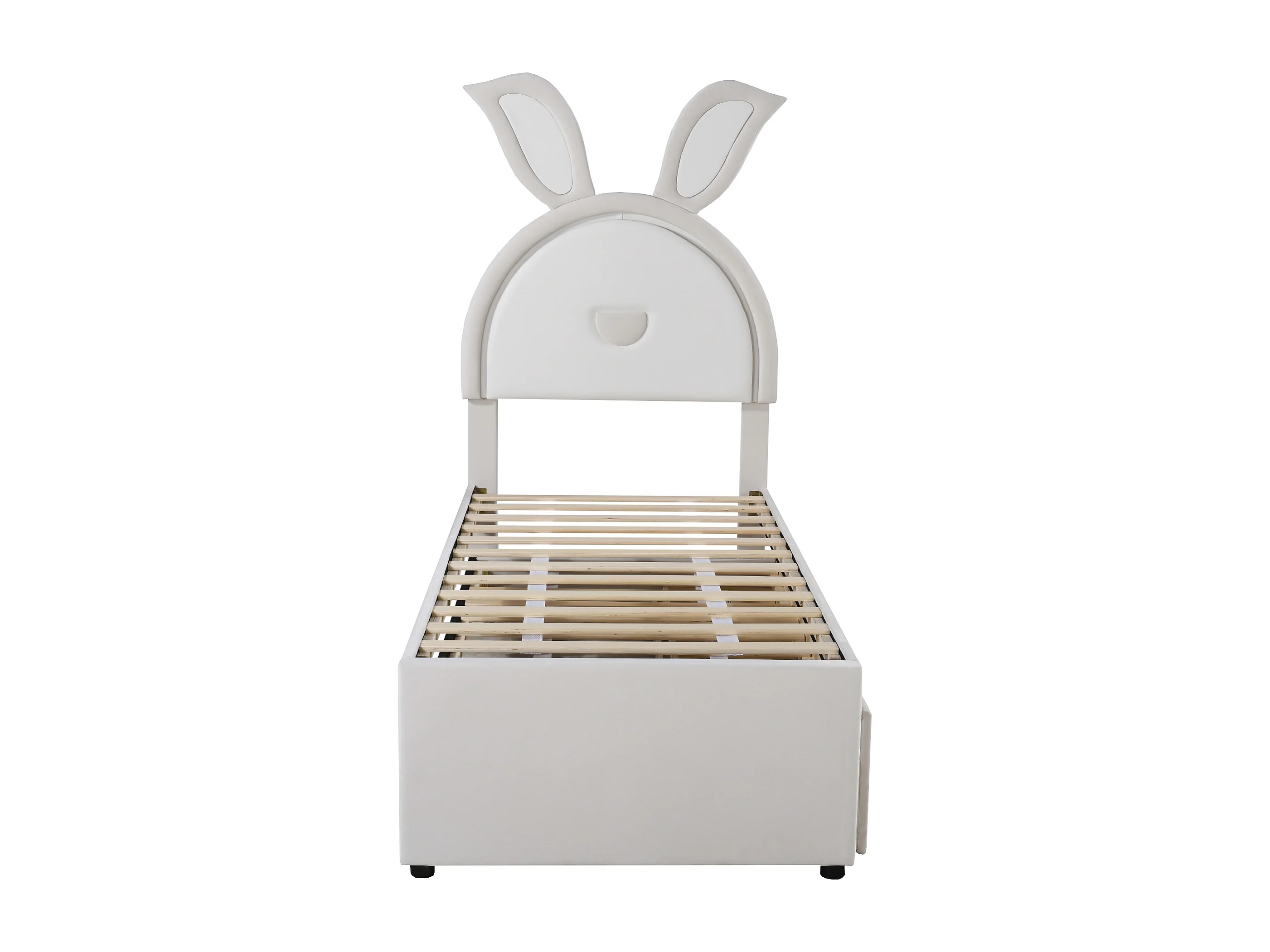 Cama abatible de 90x200 cm - Cama infantil con cajones, iluminación LED y láminas - Terciopelo beige - Sin colchón