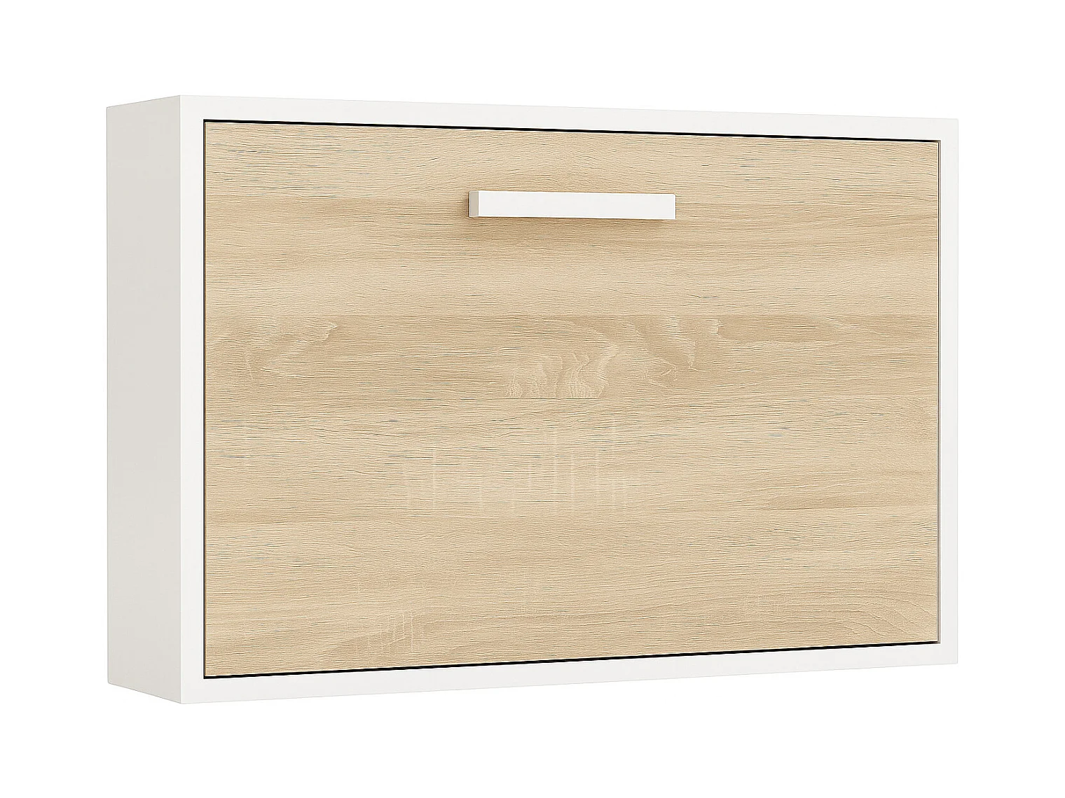 Cama abatible horizontal 140x190 Optima-Con colchón-Ropa de cama 140x190 cm-Encofrado Blanco-Frente Roble claro