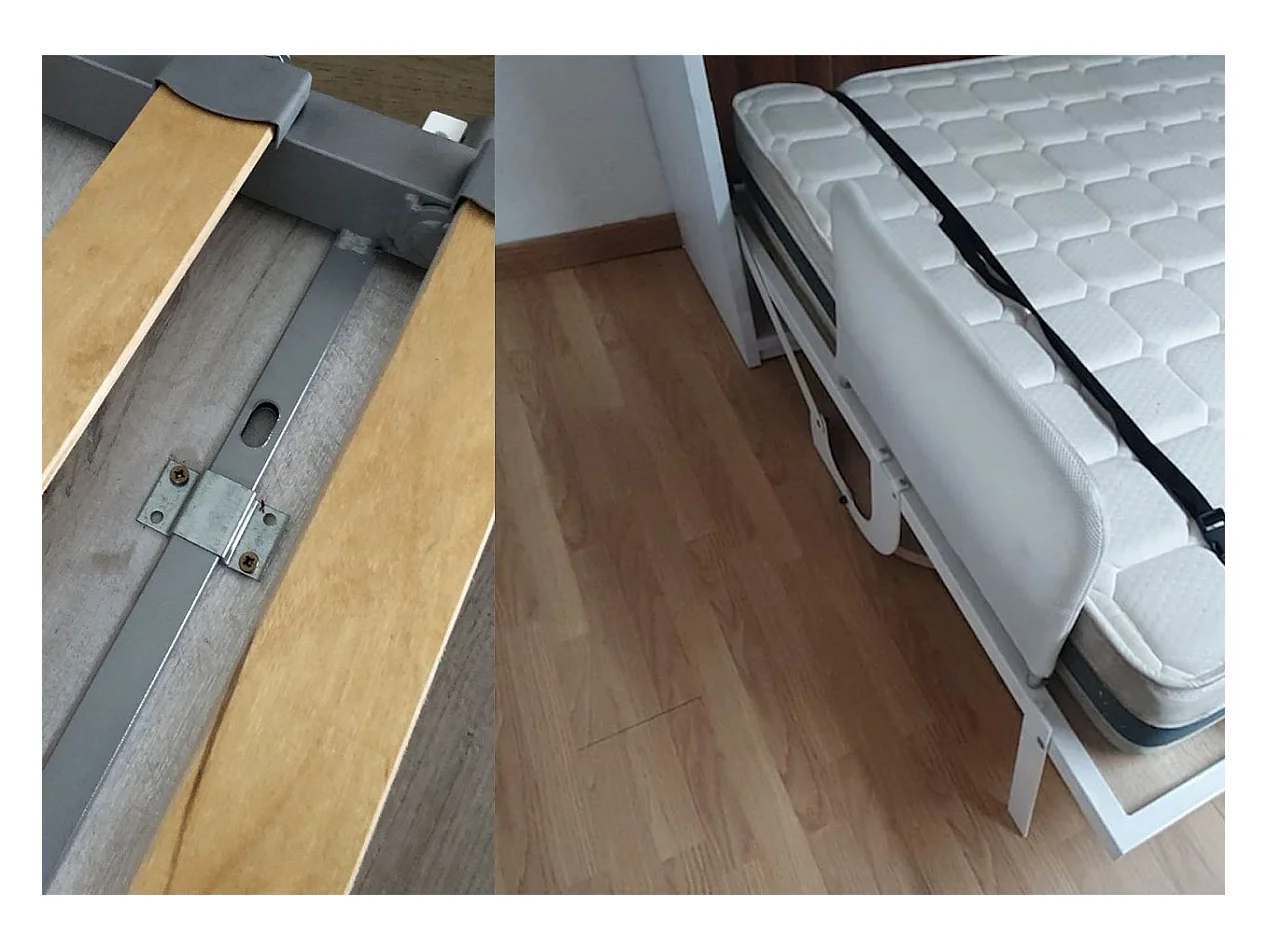 Cama abatible horizontal 140x190 Optima-Con colchón-Ropa de cama 80x190 cm-Encofrado Blanco-Frente Visón 3D