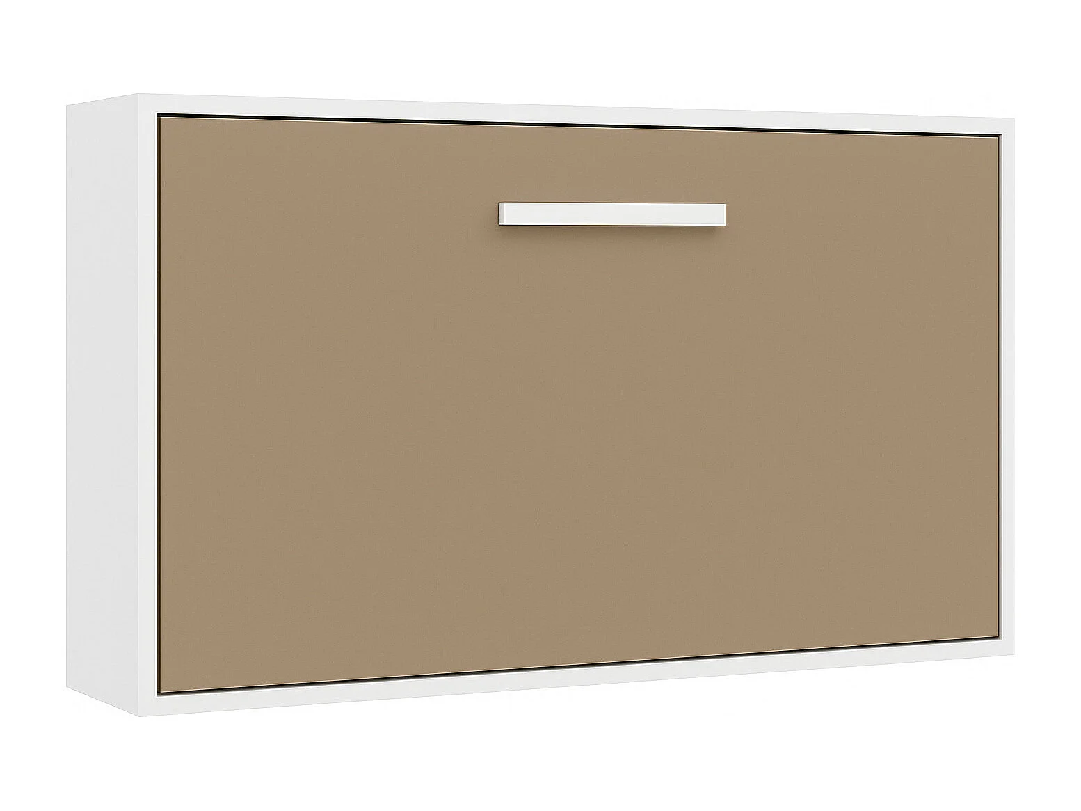 Cama abatible horizontal 140x190 Optima-Con colchón-Ropa de cama -Encofrado Blanco-Frente Topo