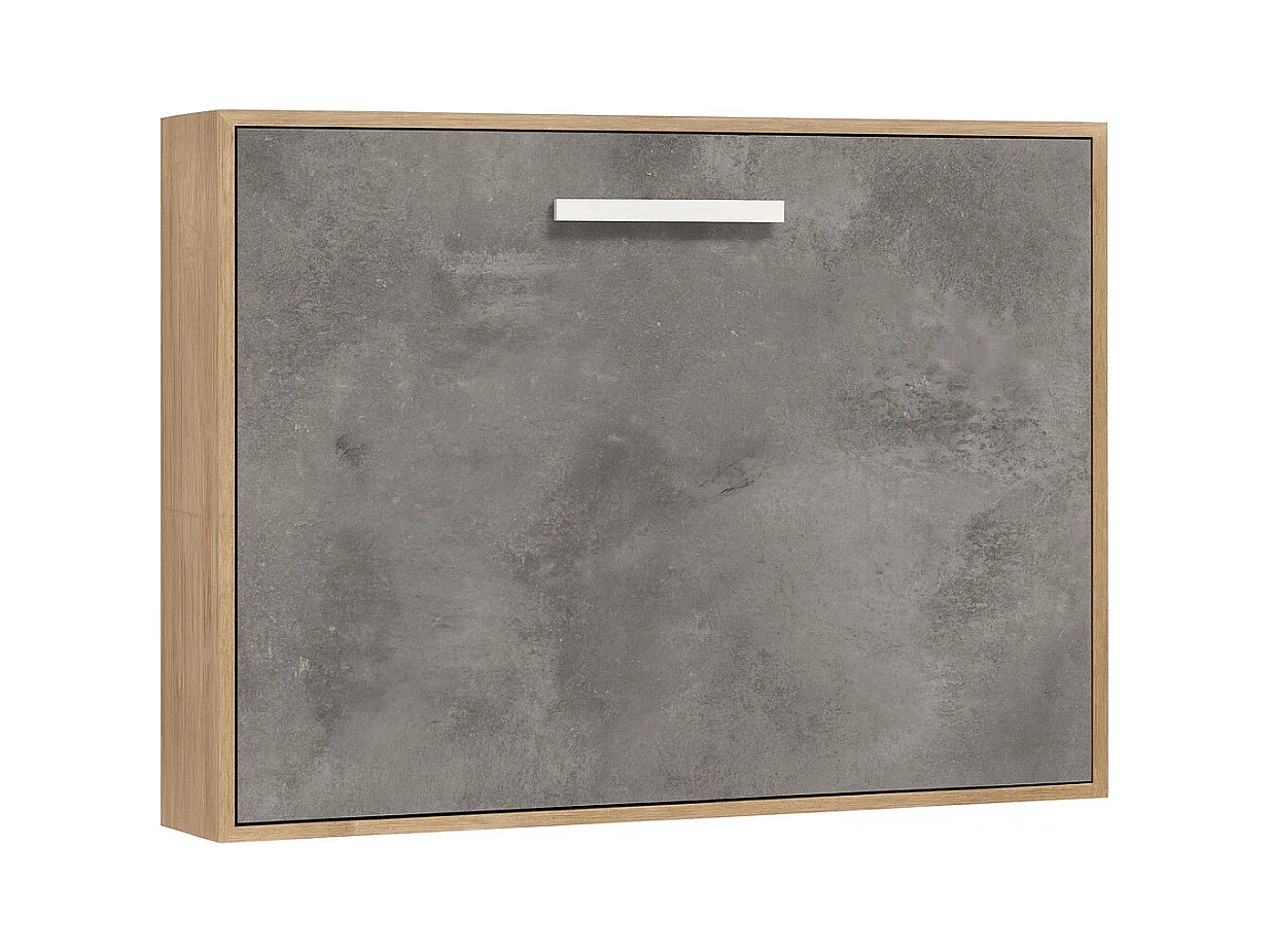 Cama abatible horizontal 140x190 Optima-Ropa de cama 140x200 cm-Encofrado Roble claro-Frente Gris cemento