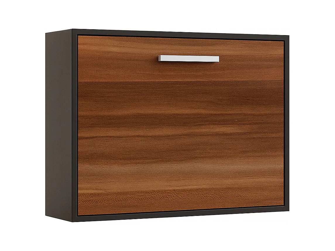 Cama abatible horizontal 140x190 Optima-Ropa de cama 160x200 cm-Encofrado Gris antracita-Frente Nogal