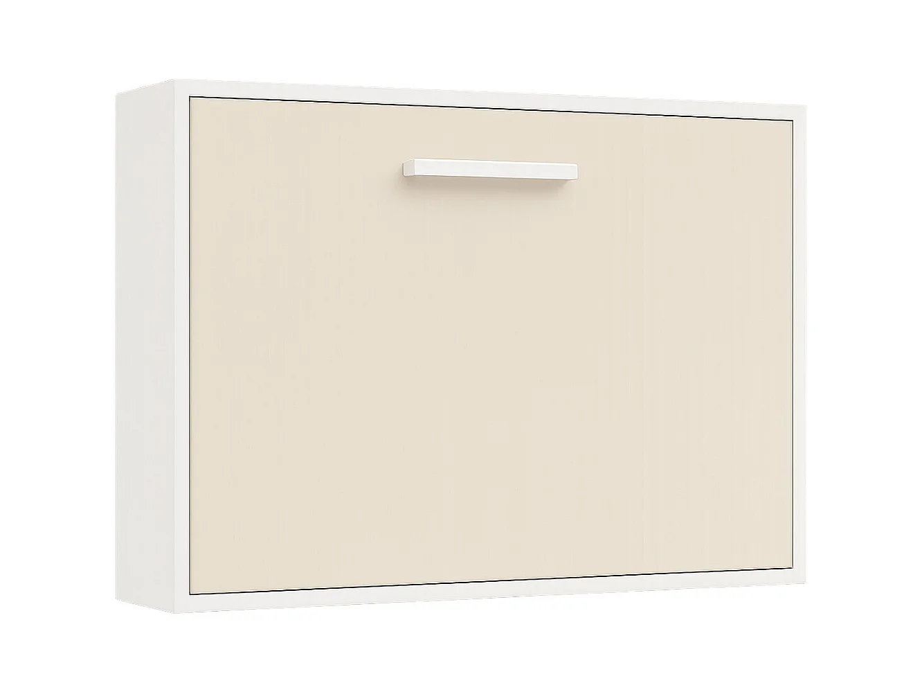 Cama abatible horizontal 140x190 Optima-Ropa de cama -Encofrado Fresno 3D-Frente Blanche