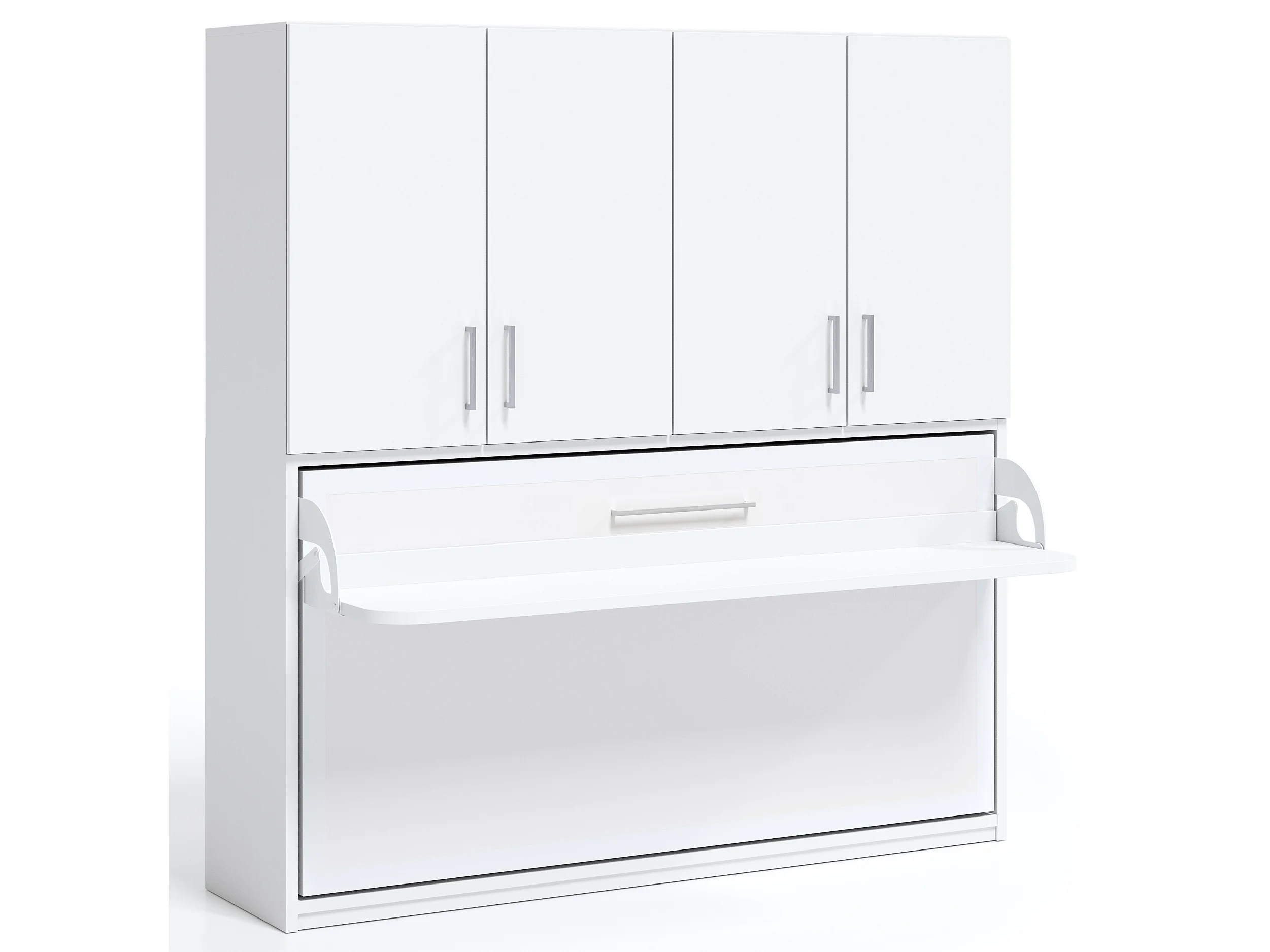 Cama abatible horizontal 90x200 con escritorio y armario de 4 puertas Spako Gama Alta-Blanco-Profundidad 34.5cm