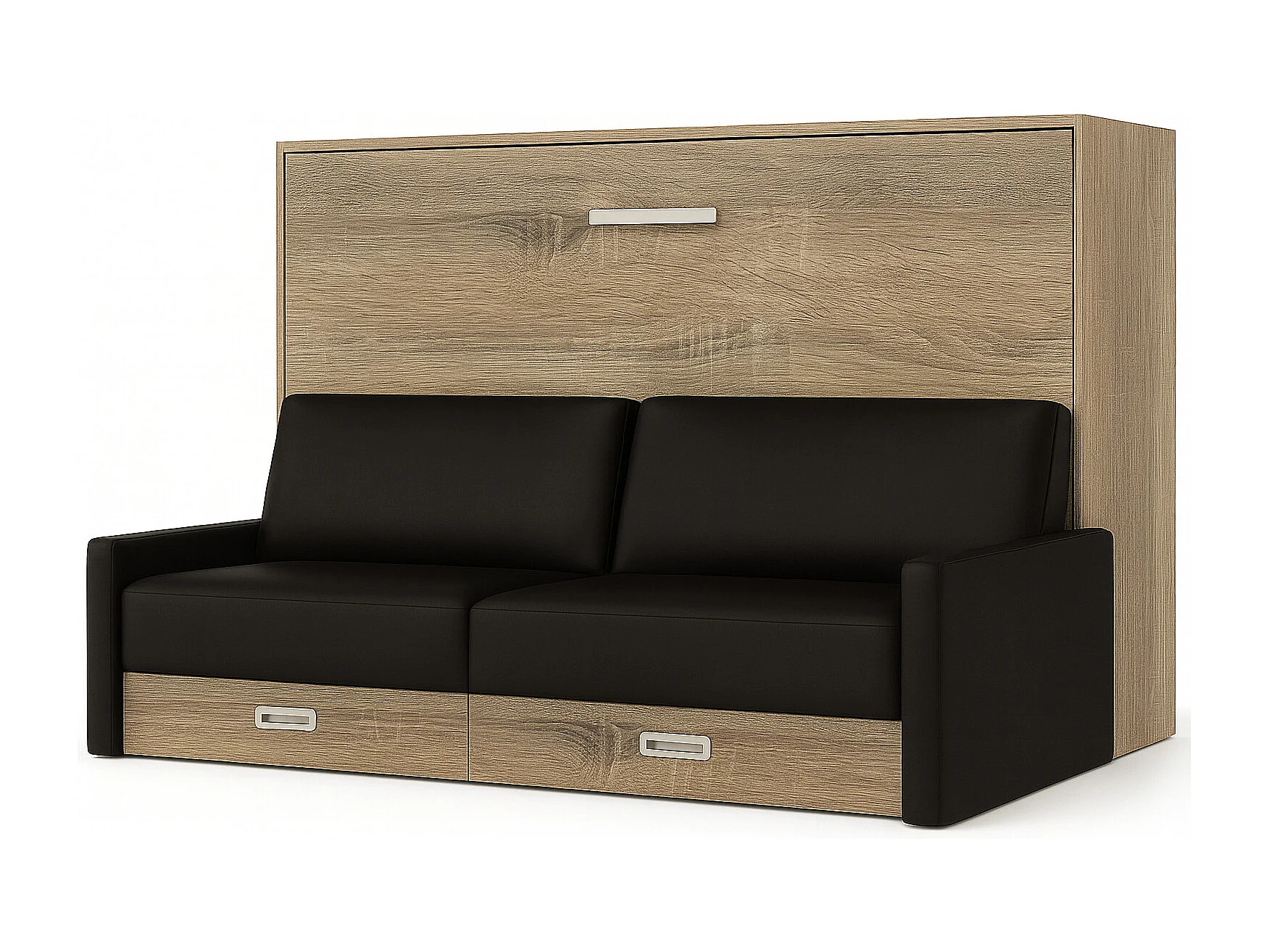 Cama abatible horizontal con sofá Veta-Ropa de cama 120x190 cm-Sofá Marrón-Estructura y fachada Nogal