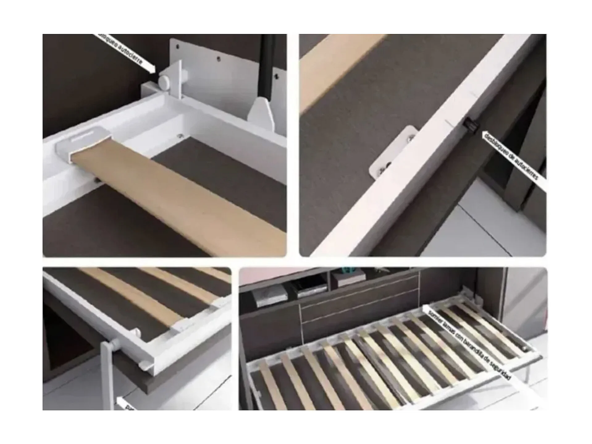 Cama abatible vertical 140x190 cm con armario y escritorio Kampo-Encofrado Nogal-Frente Nogal