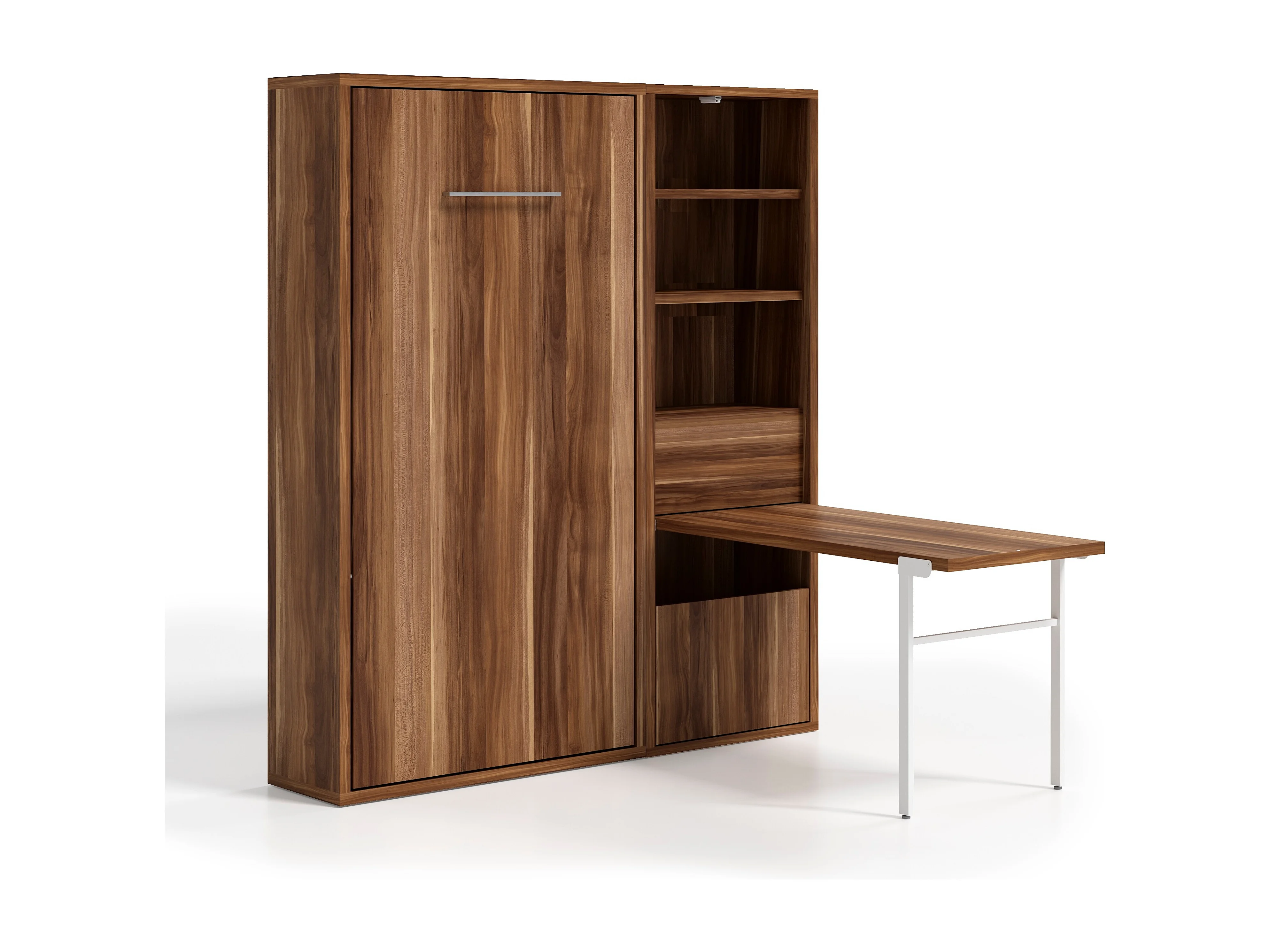 Cama abatible vertical 160x200 cm con armario y escritorio Kampo-Encofrado Nogal-Frente Nogal