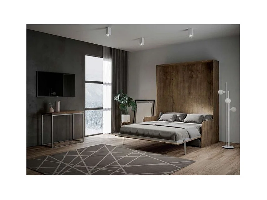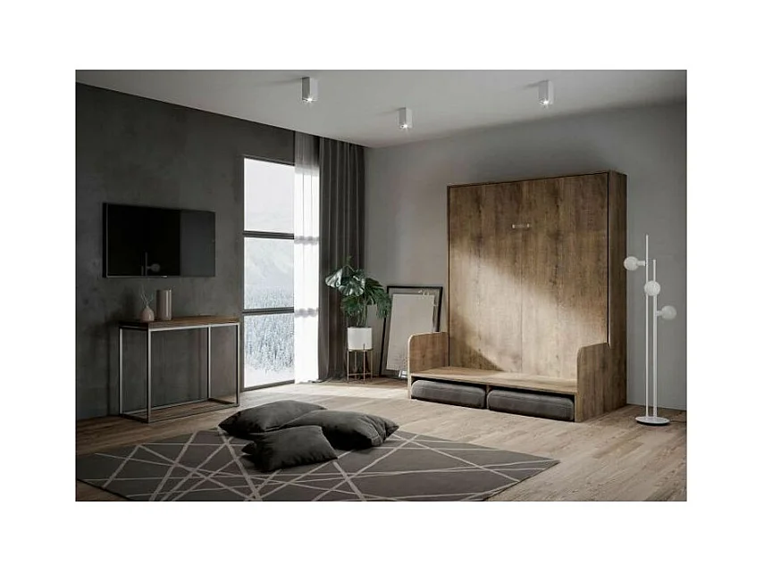 Cama abatible vertical en nogal con sofá de tela Bounto 120x190 cm - 32 colores de tela-Color Microfibra 20
