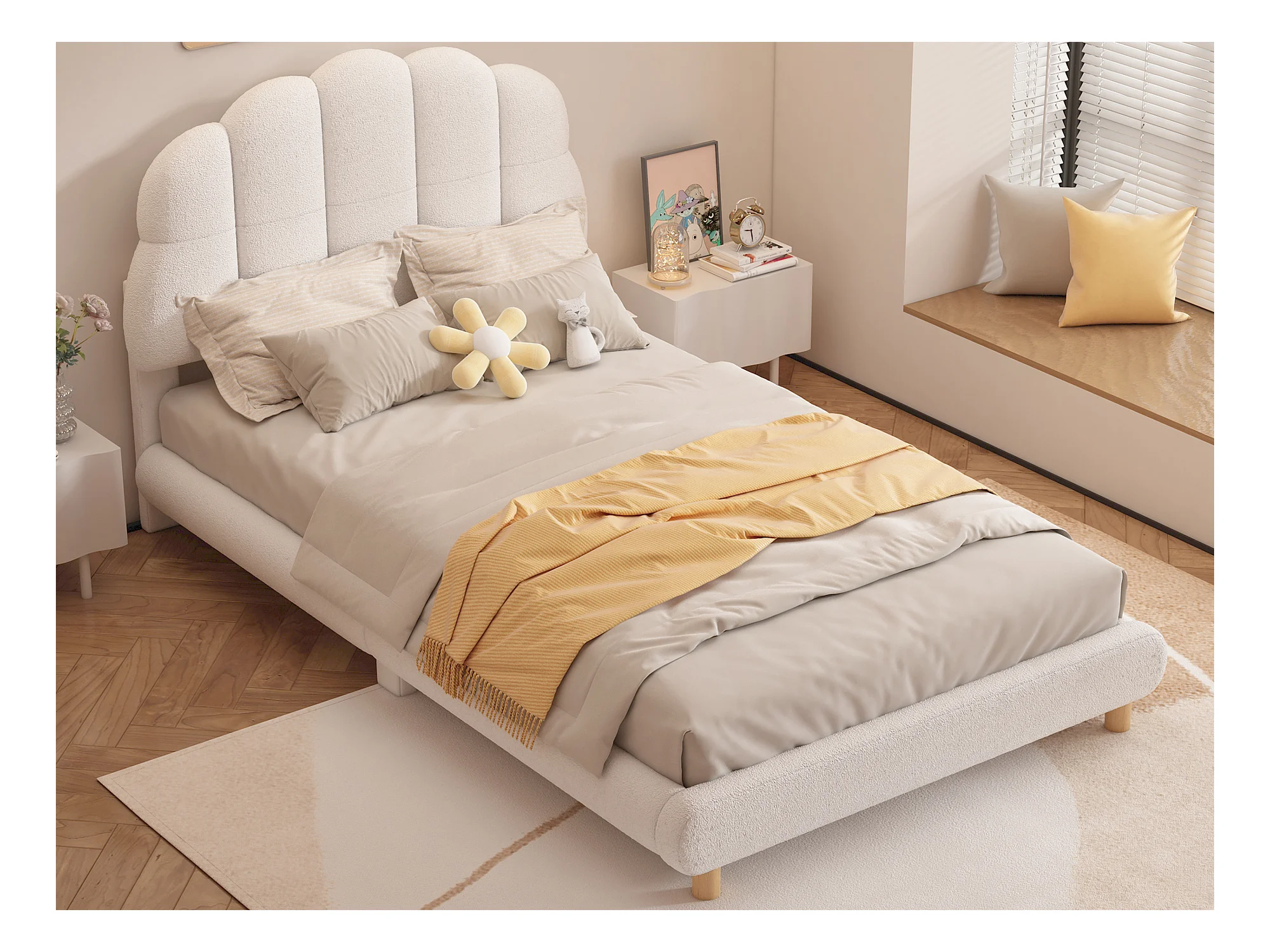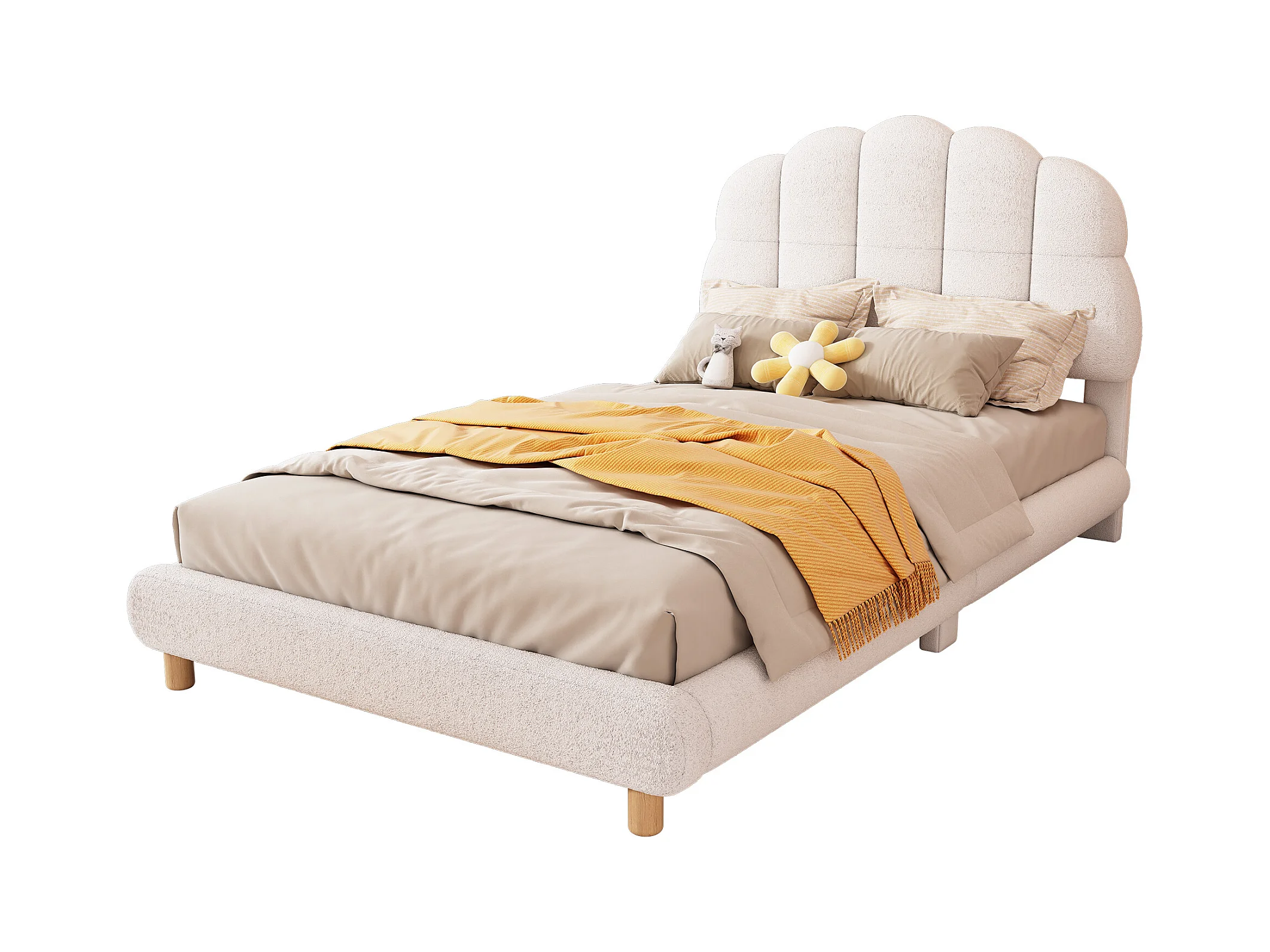 Cama acolchada de 90 x 200 cm, cuna de peluche, bonito cabecero, somier de láminas, color blanco