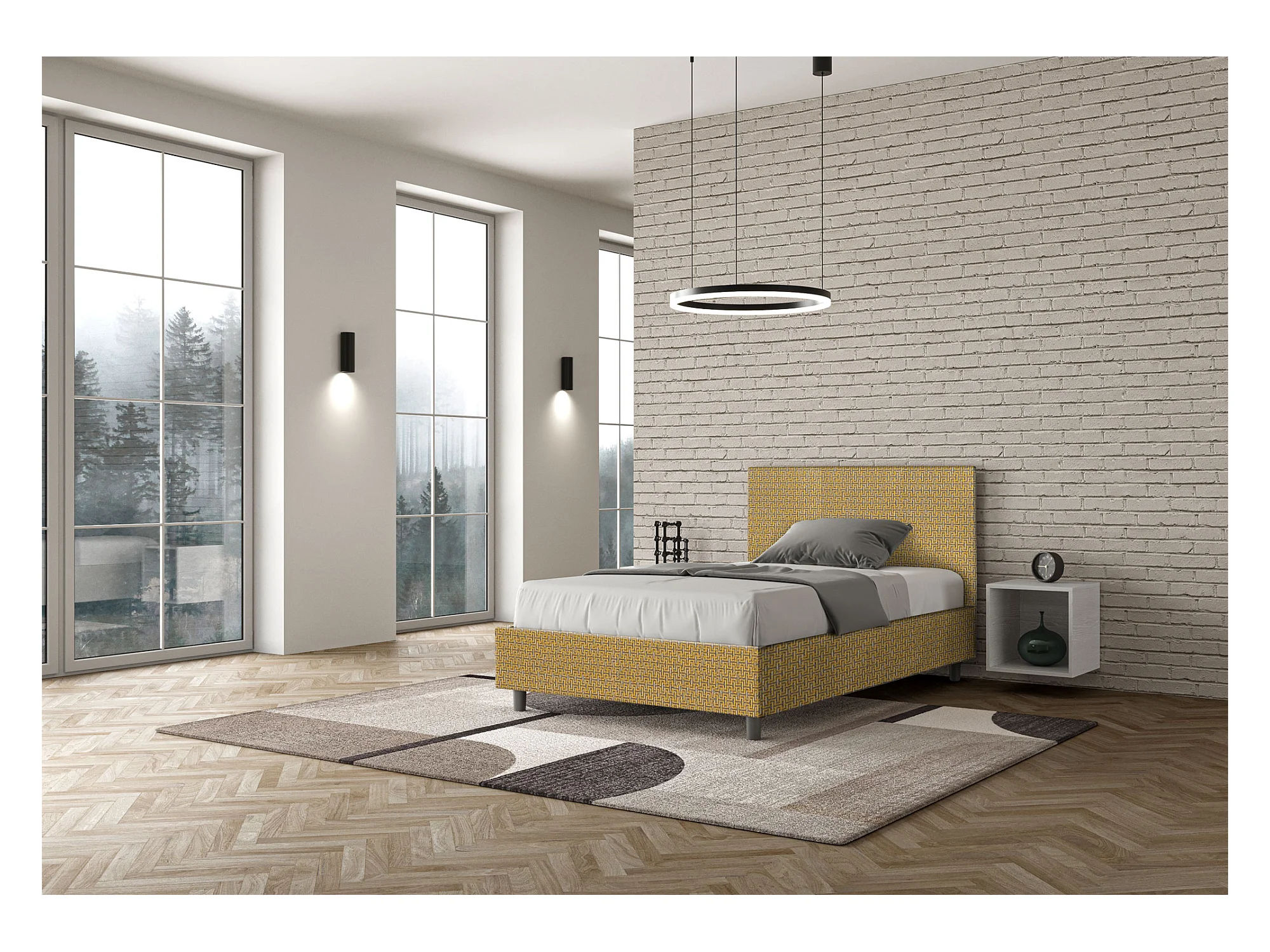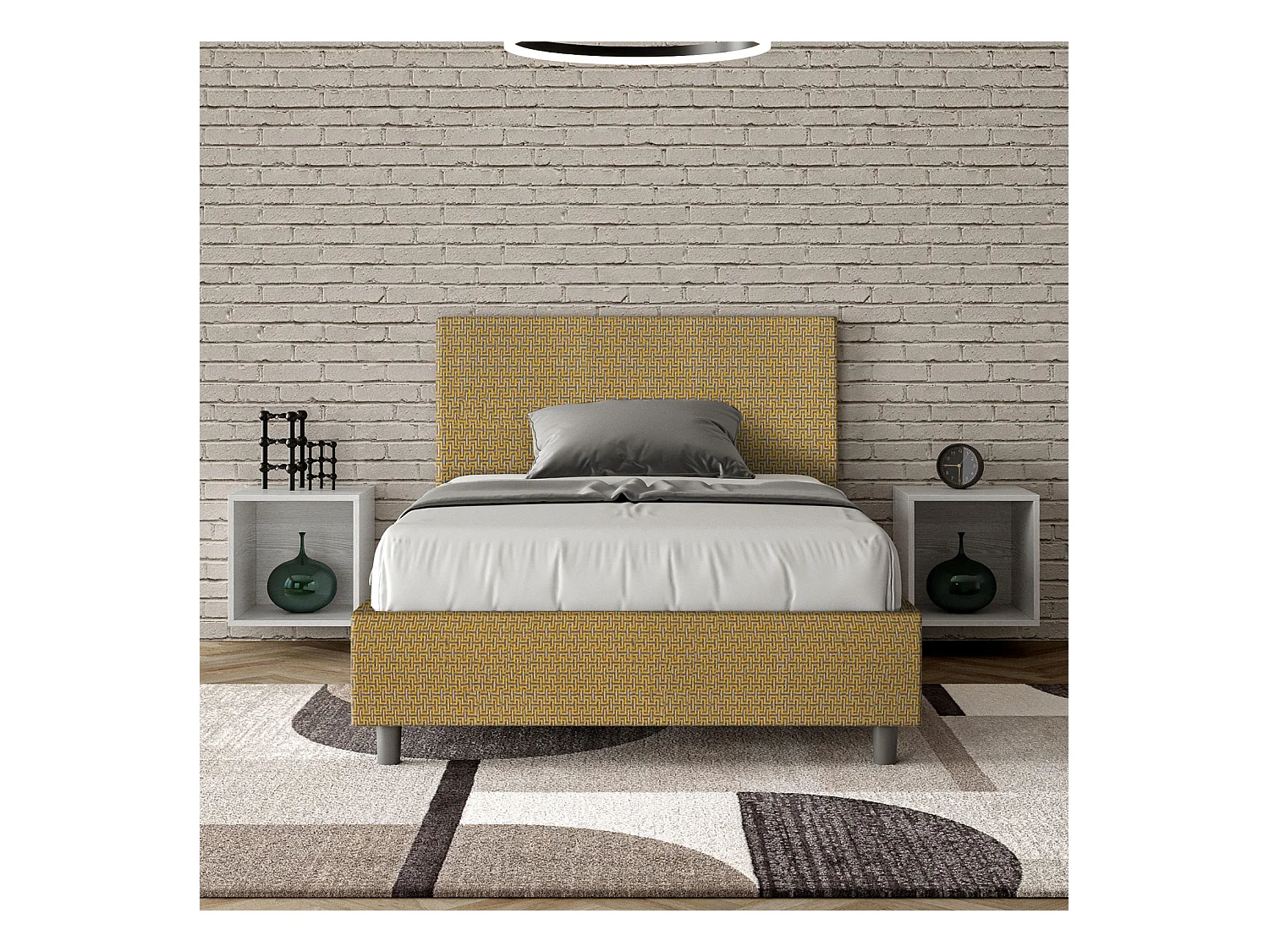 Cama acolchada sin somier 120x210 en tela Labirinto 06 amarillo Adele