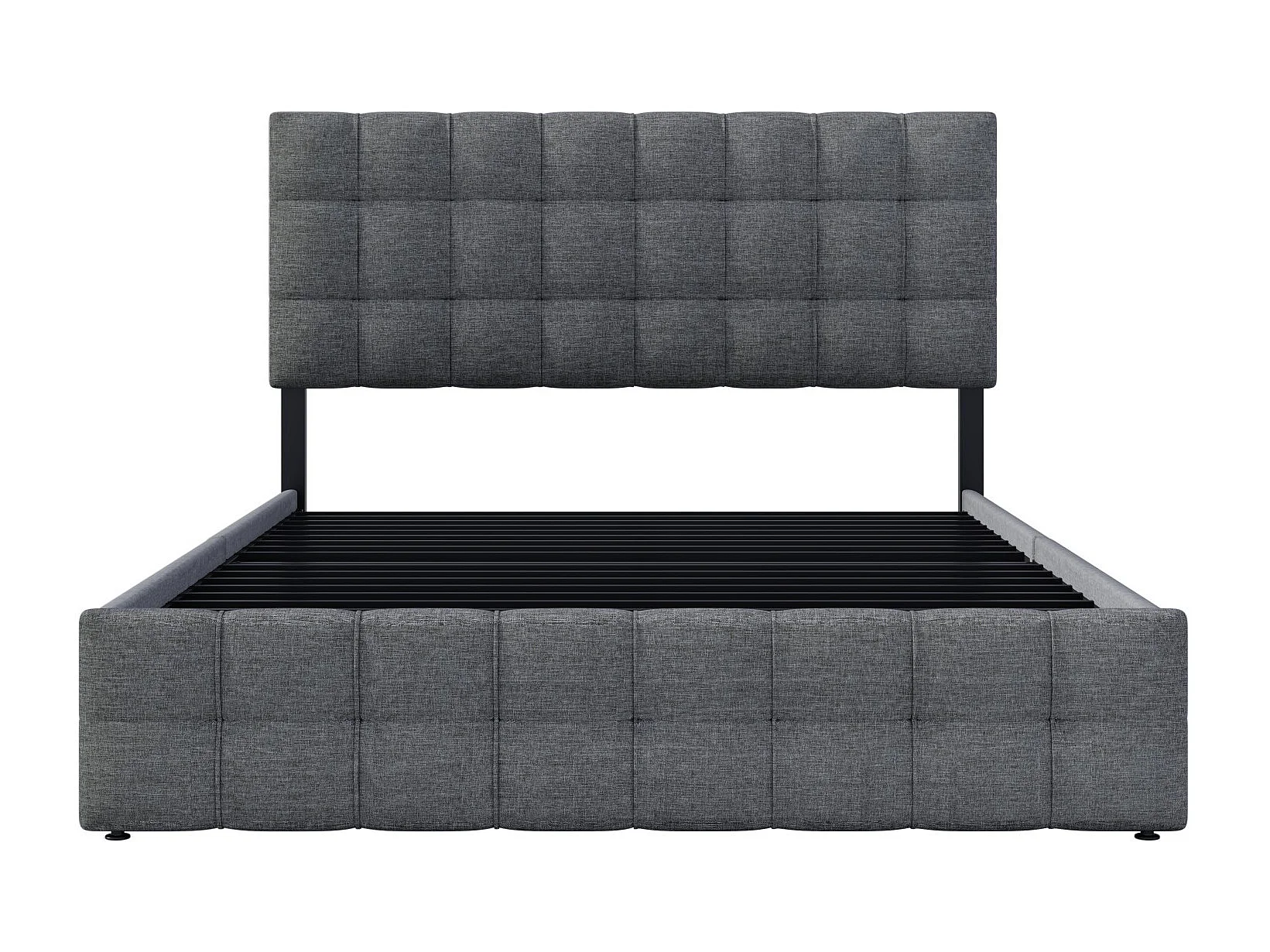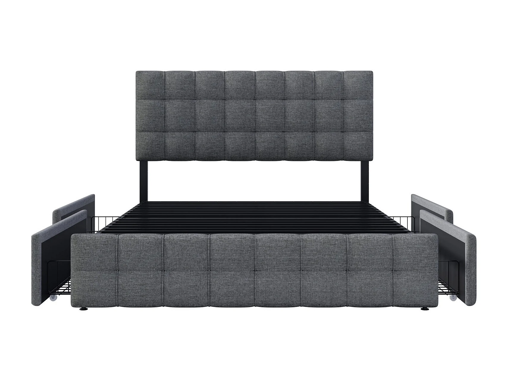 Cama adulto 140 x 200 cm con cabecero ajustable y 4 cajones, somier de láminas metálicas - Lino gris (sin colchón)