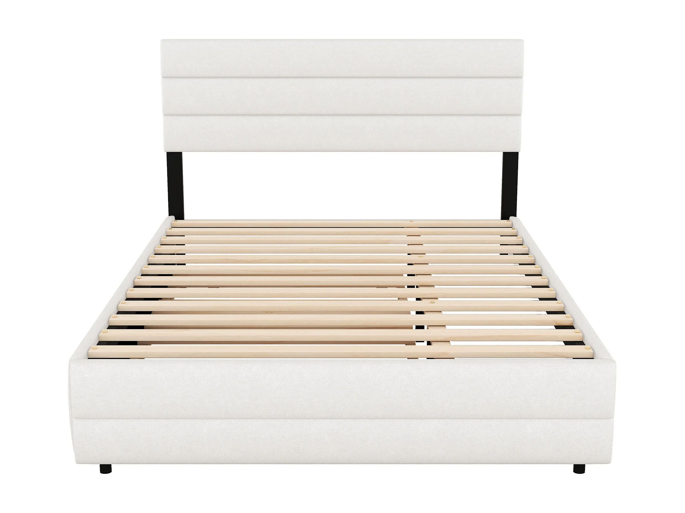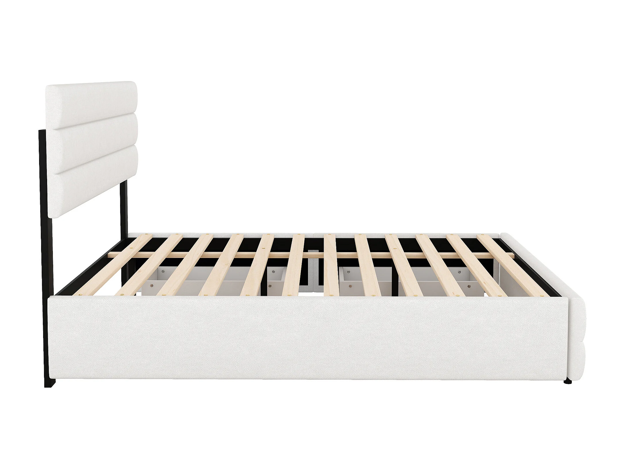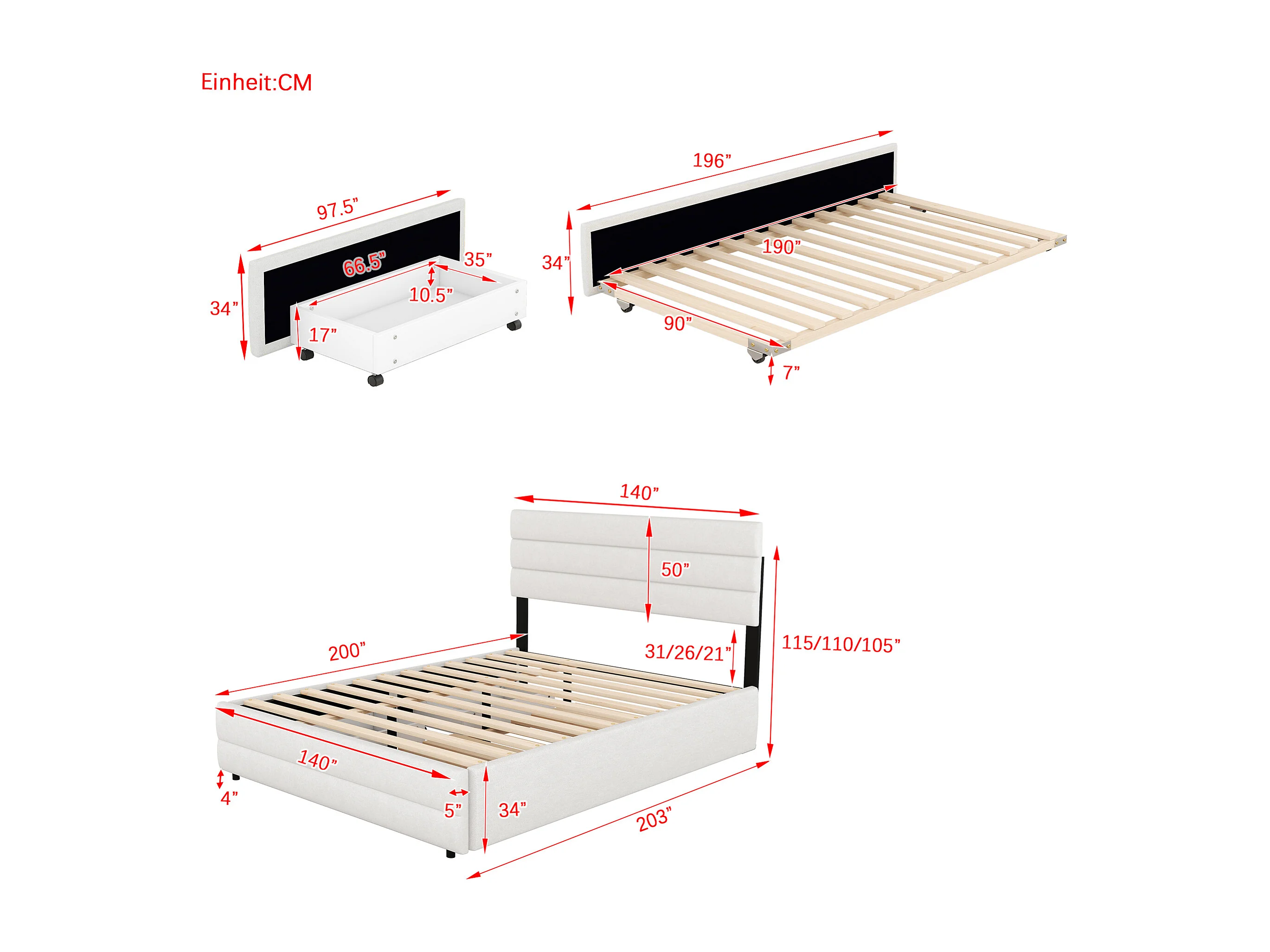 Cama adulto 140x200cm con cama nido 90x190cm y 2 cajones - Tejido de lino beige