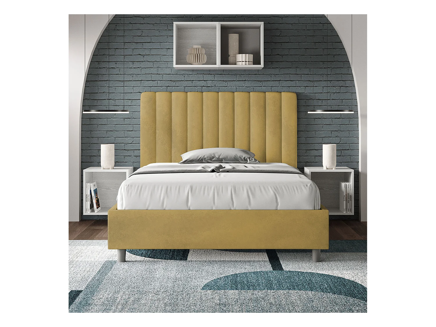 Cama Agueda con somier acolchado 120x200 microfibra ocre