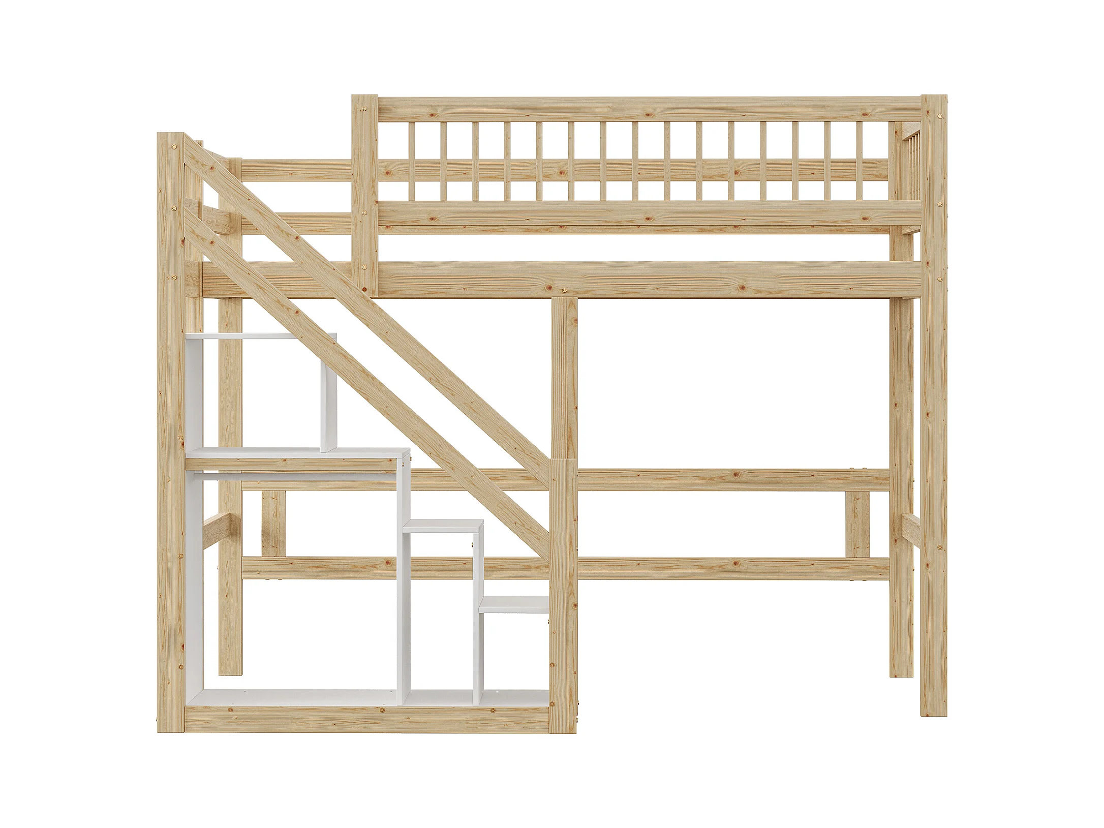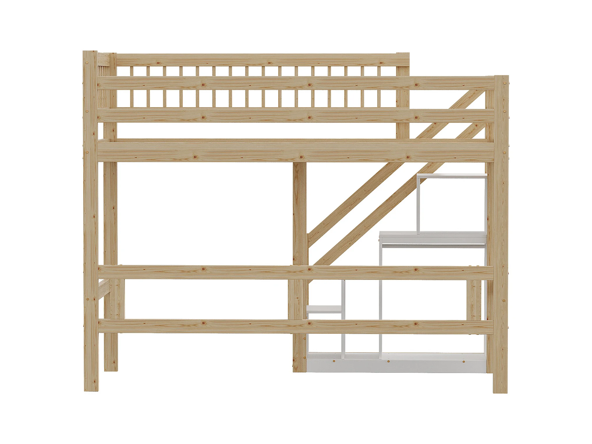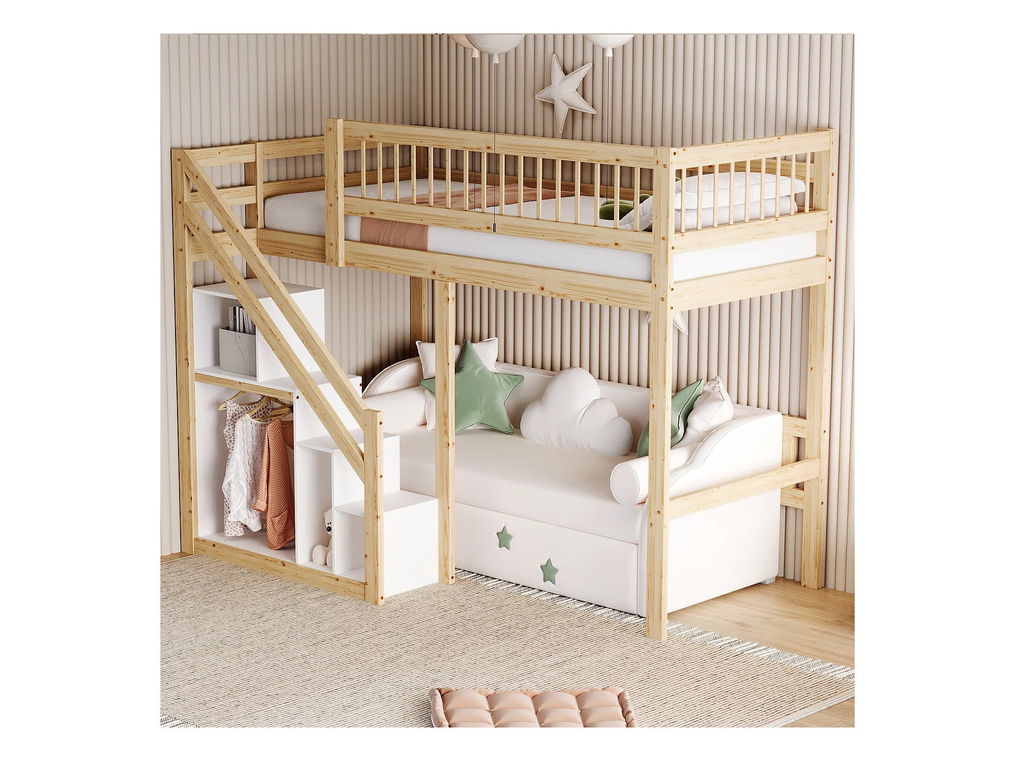 Cama alta 90 x 200 cm con armario - Madera maciza + MDF - Natural y blanco (sin colchón)