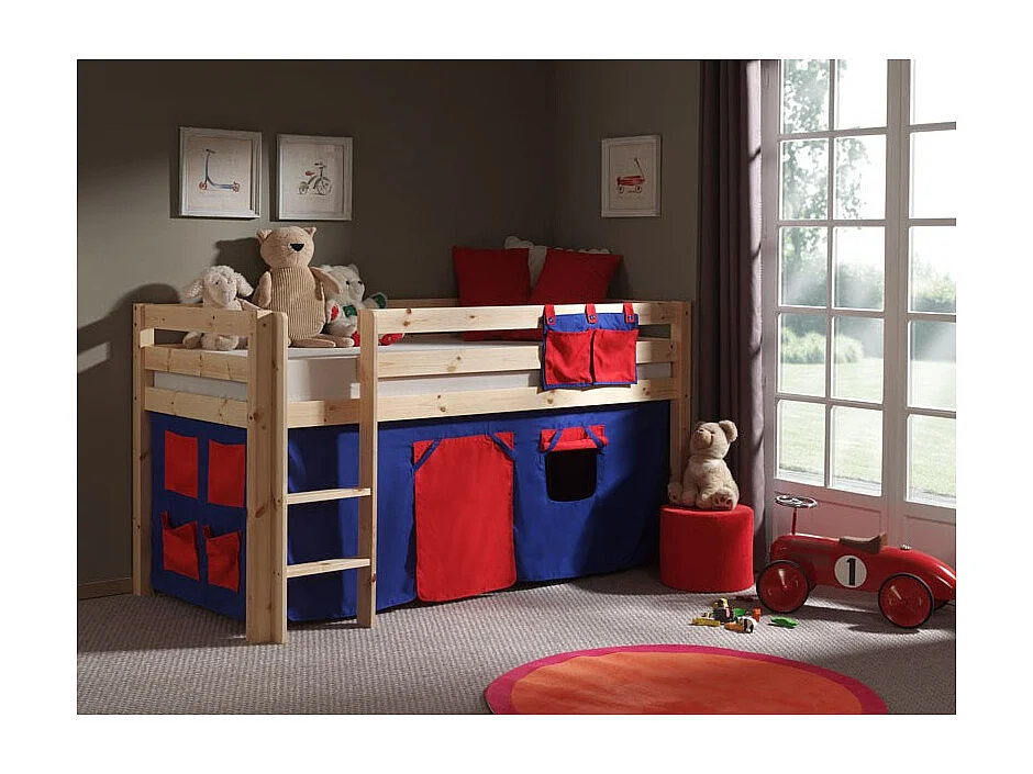 Cama alta 90x200 cm con tienda Domino pino macizo claro Pino