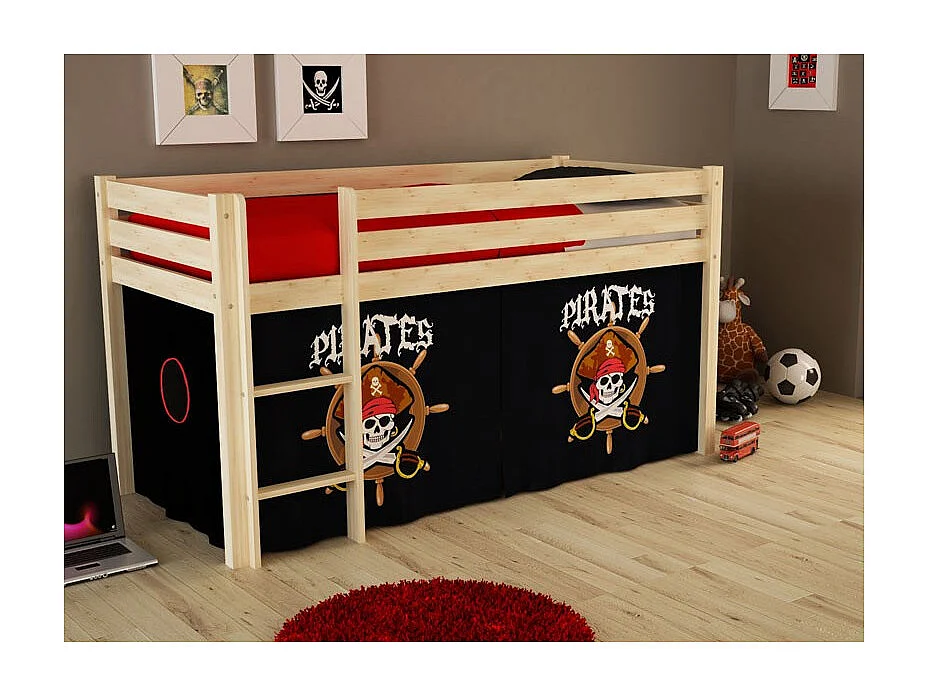 Cama alta 90x200 cm con tienda pirata negra pino macizo claro Pino