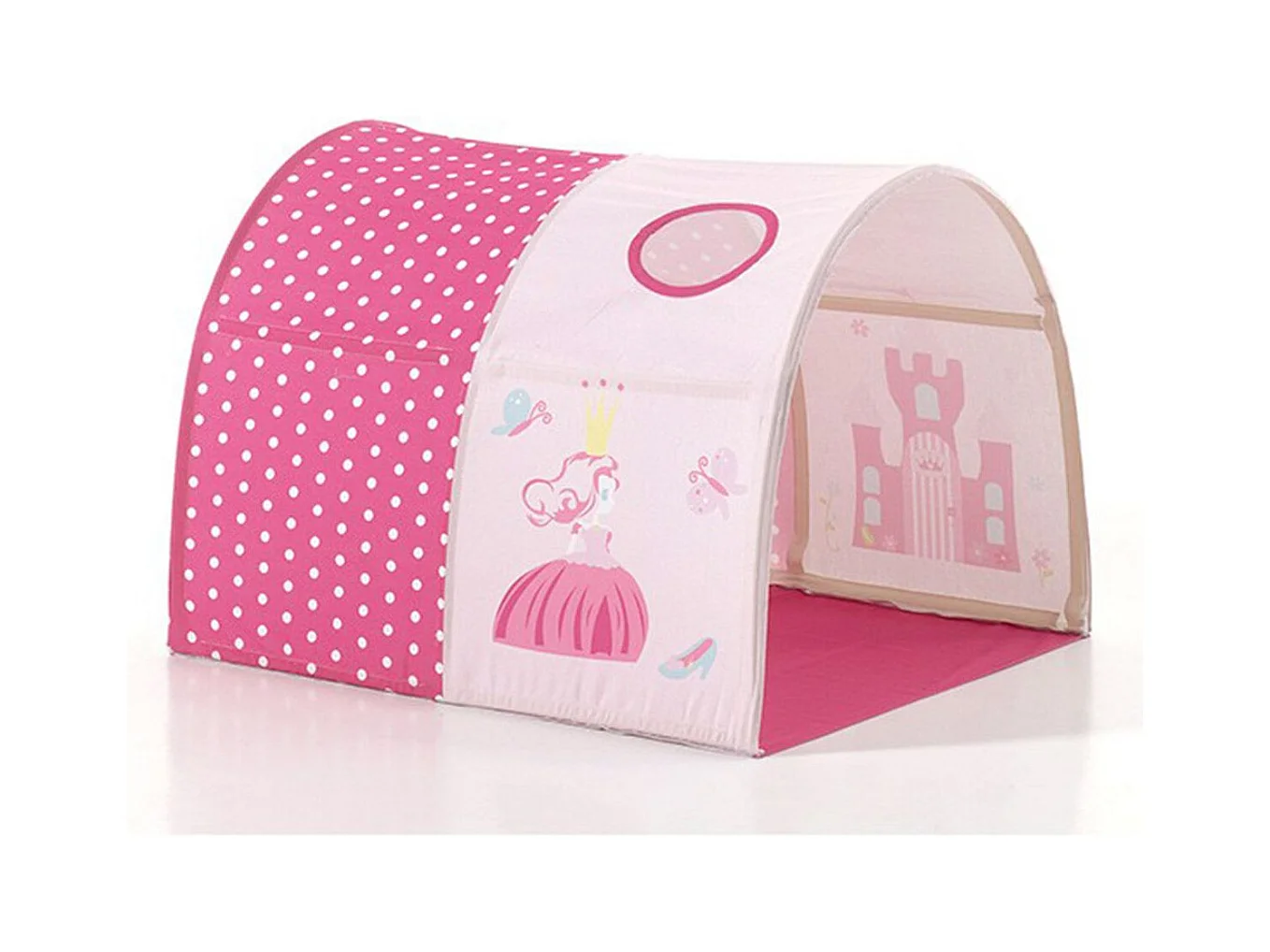 Cama alta 90x200 cm con tienda y túnel princesa pino macizo claro Pino