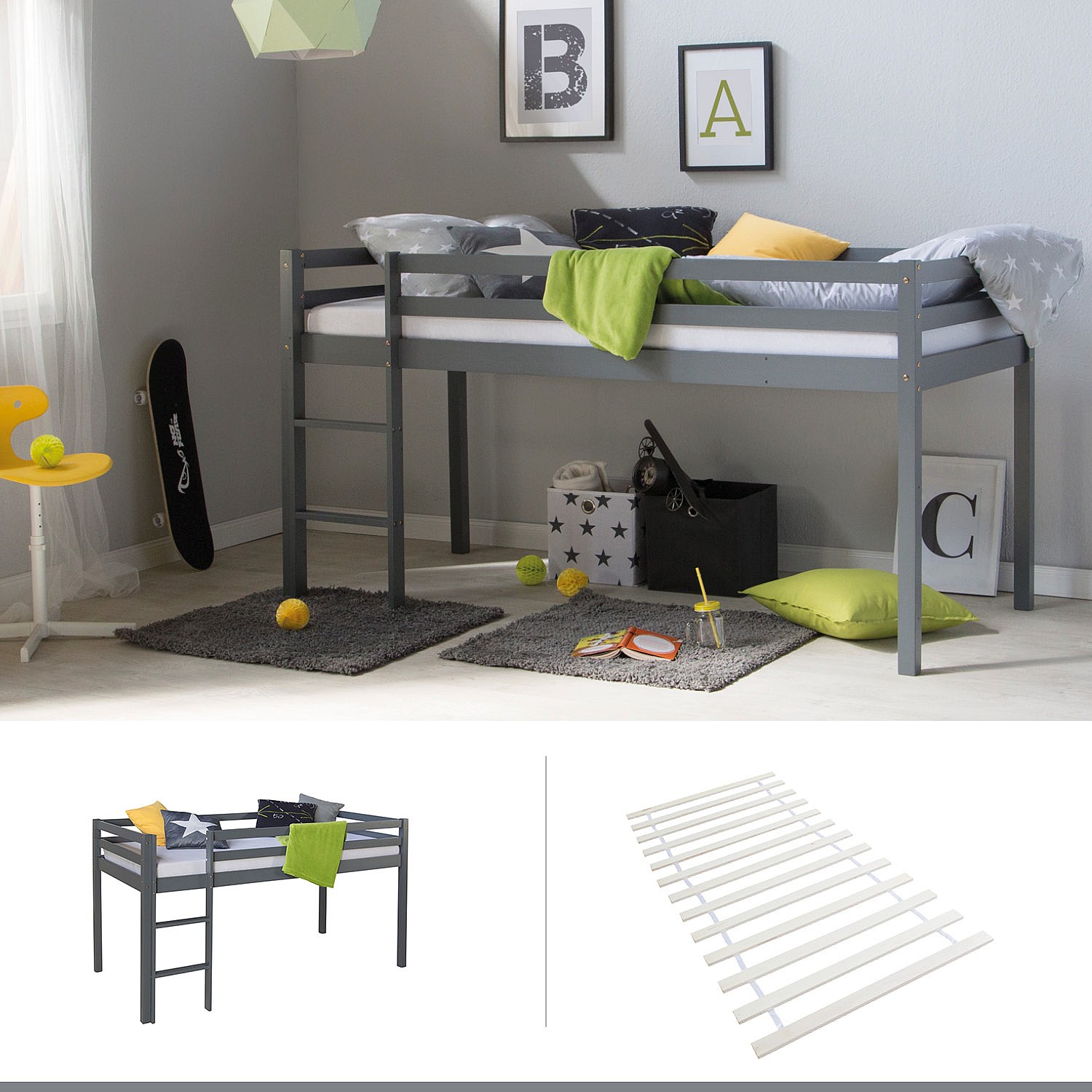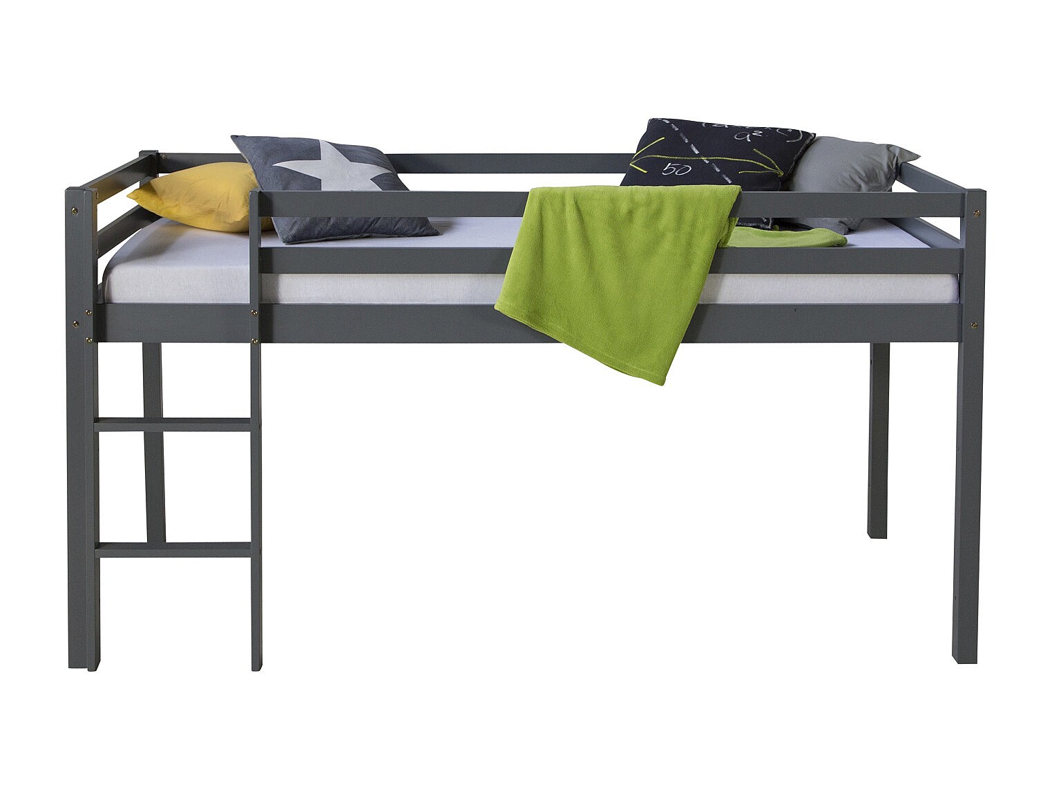 Cama alta 90x200 cm Gris Pino macizo Cama infantil Litera