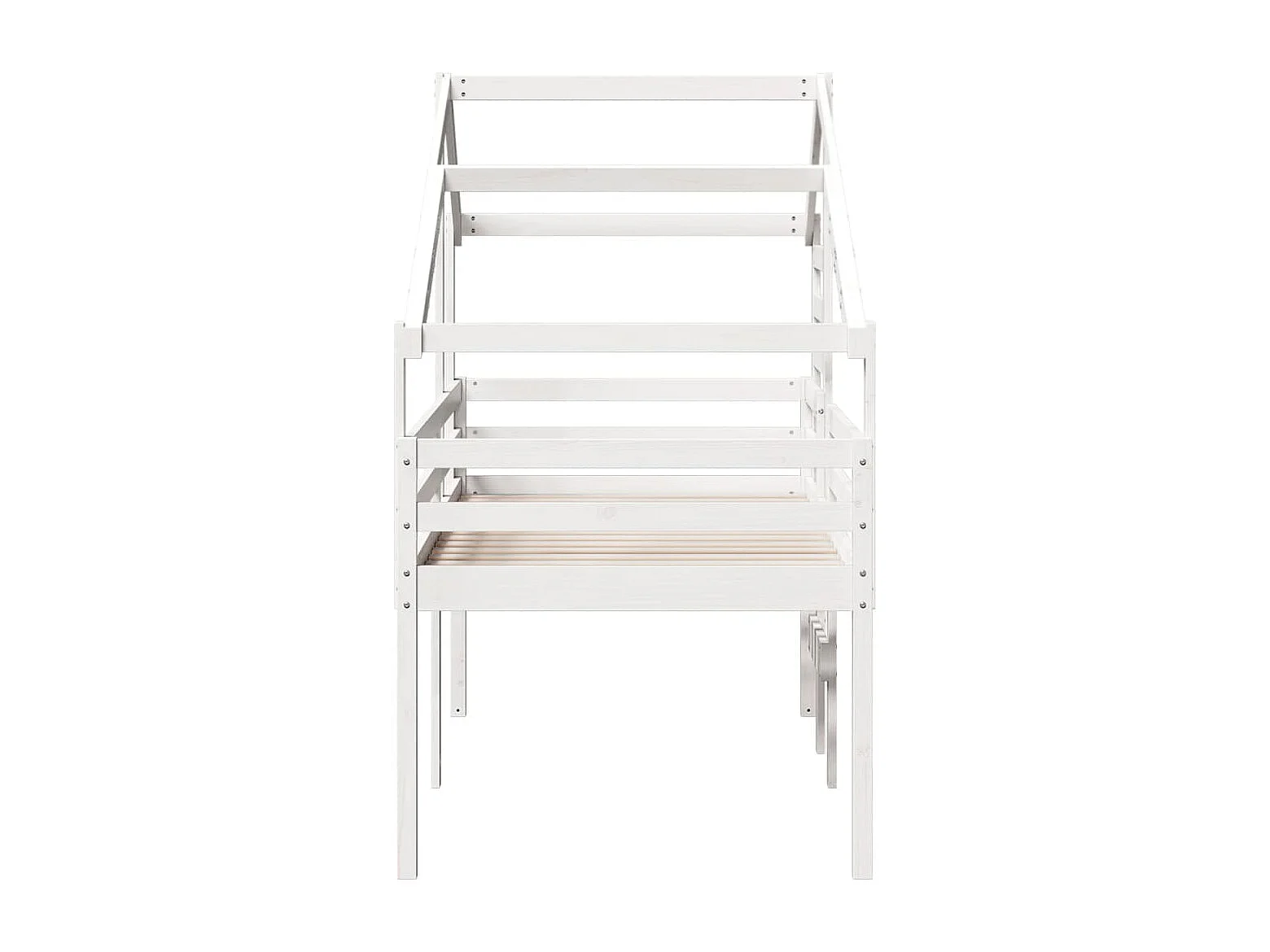 Cama alta con techo madera maciza pino blanca 75x190 cm
