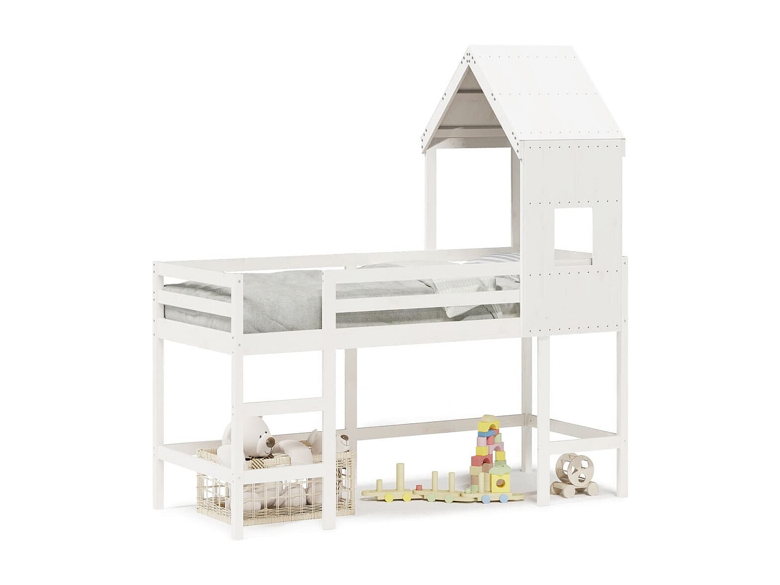 Cama alta escalera y techo madera maciza pino blanca 90x200 cm