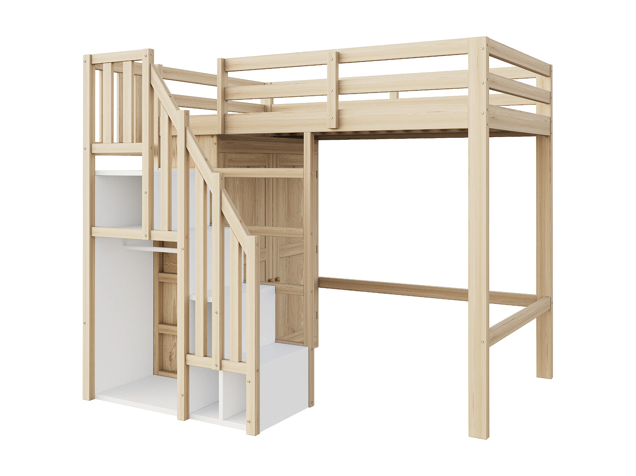 Cama altillo 90x200 cm - con escalera de seguridad + armario - marco de madera maciza - natural (colchón no incluido)