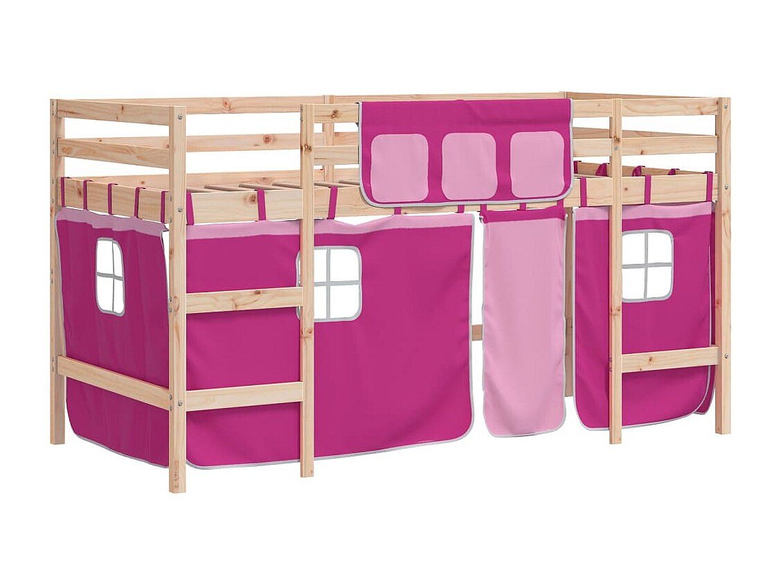 Cama alta infantil con cortinas sin colchón rosa 80x200cm