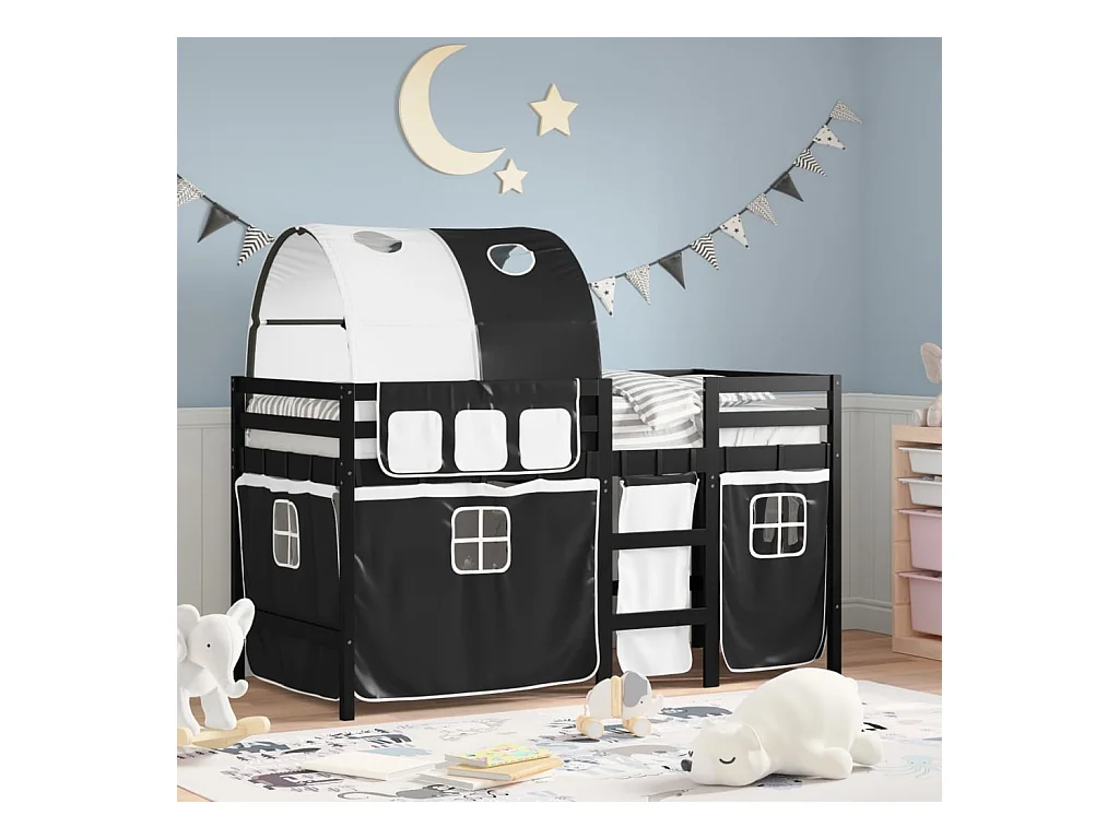 Cama alta niños con túnel madera pino blanco negro 80x200 cm ES640420