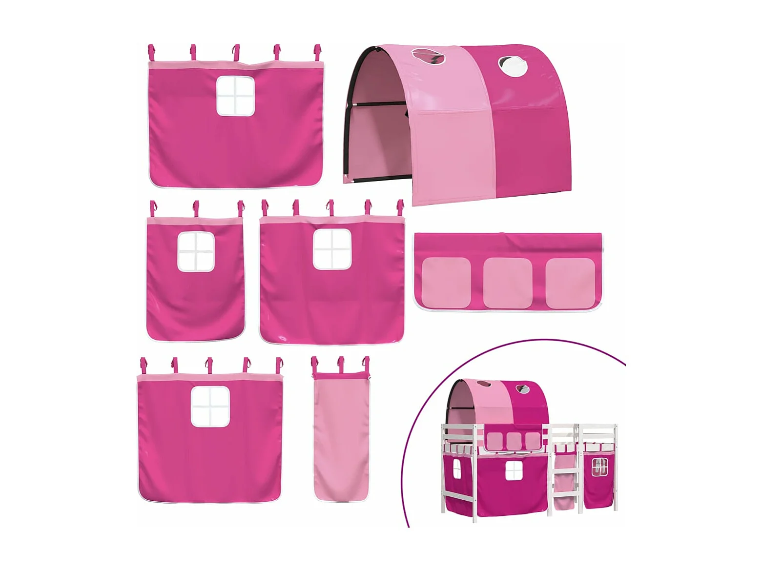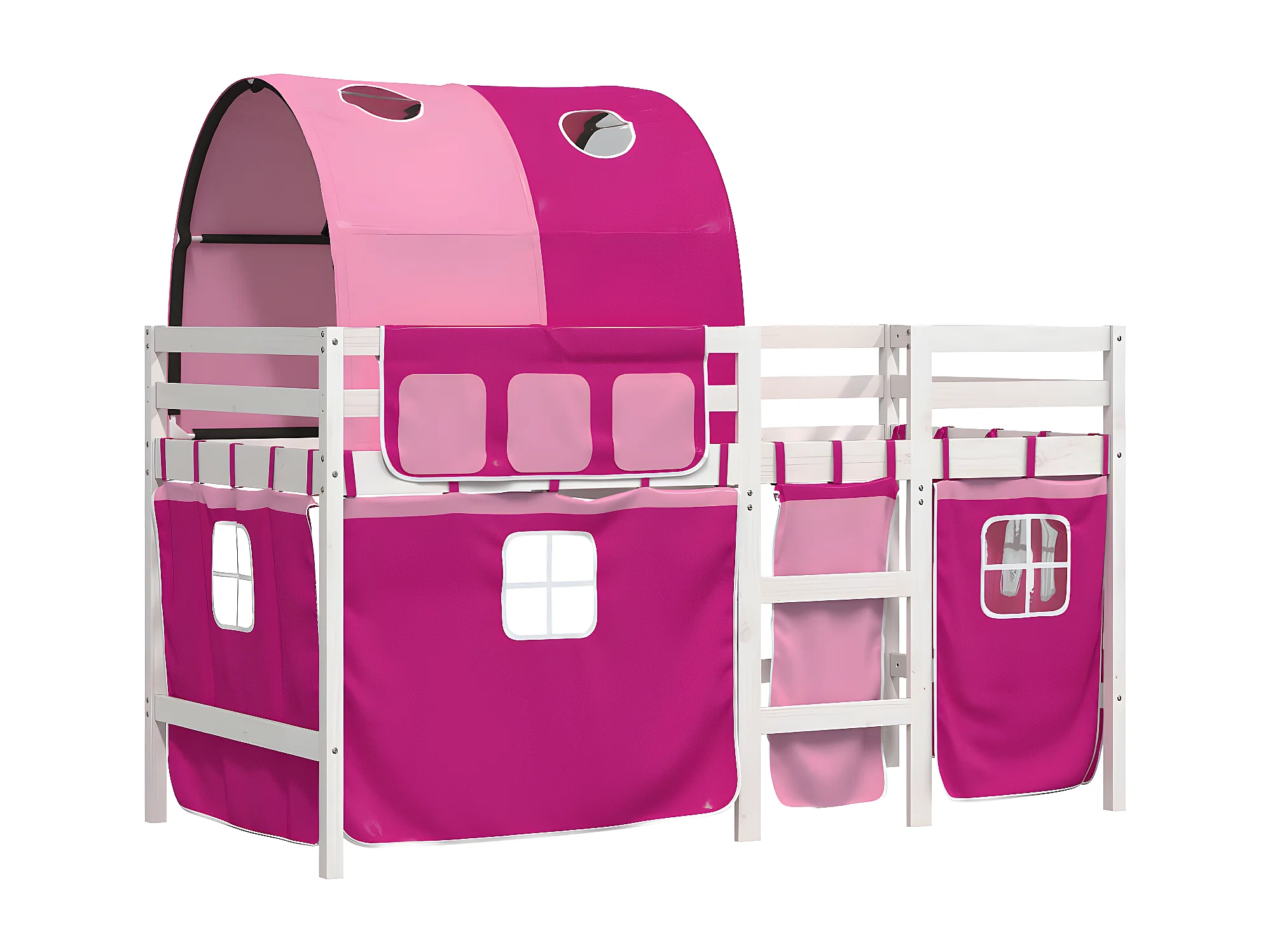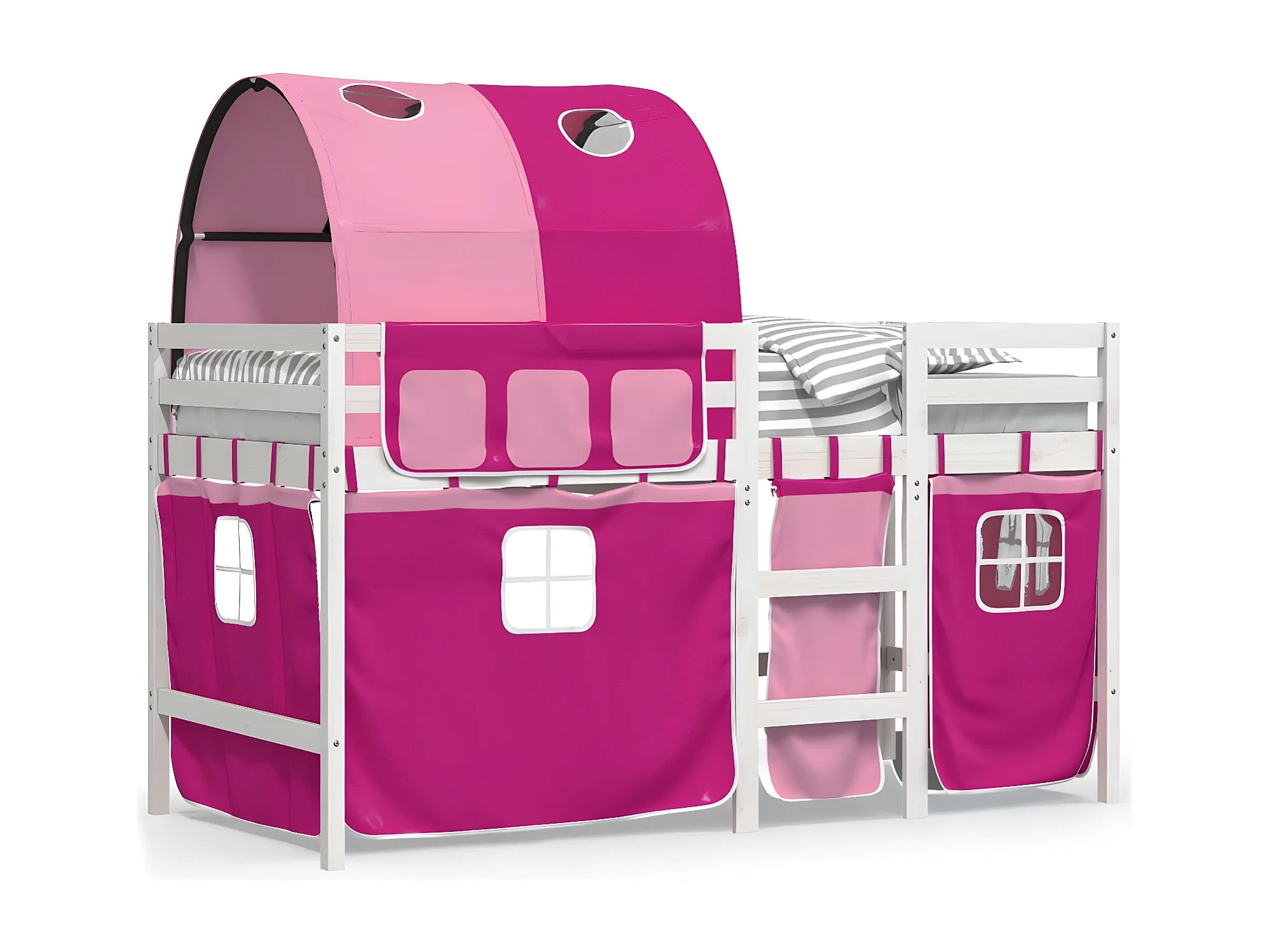 Cama alta para niños con túnel madera pino rosa 90x190 cm
