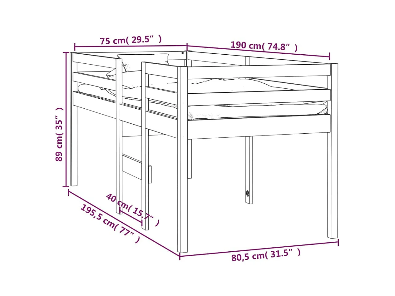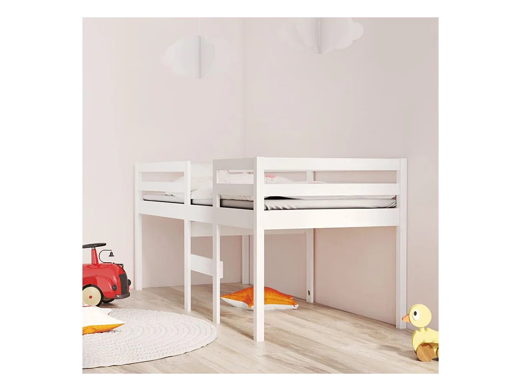 Cama alta sin colchón blanca 75x190 cm madera maciza de pino