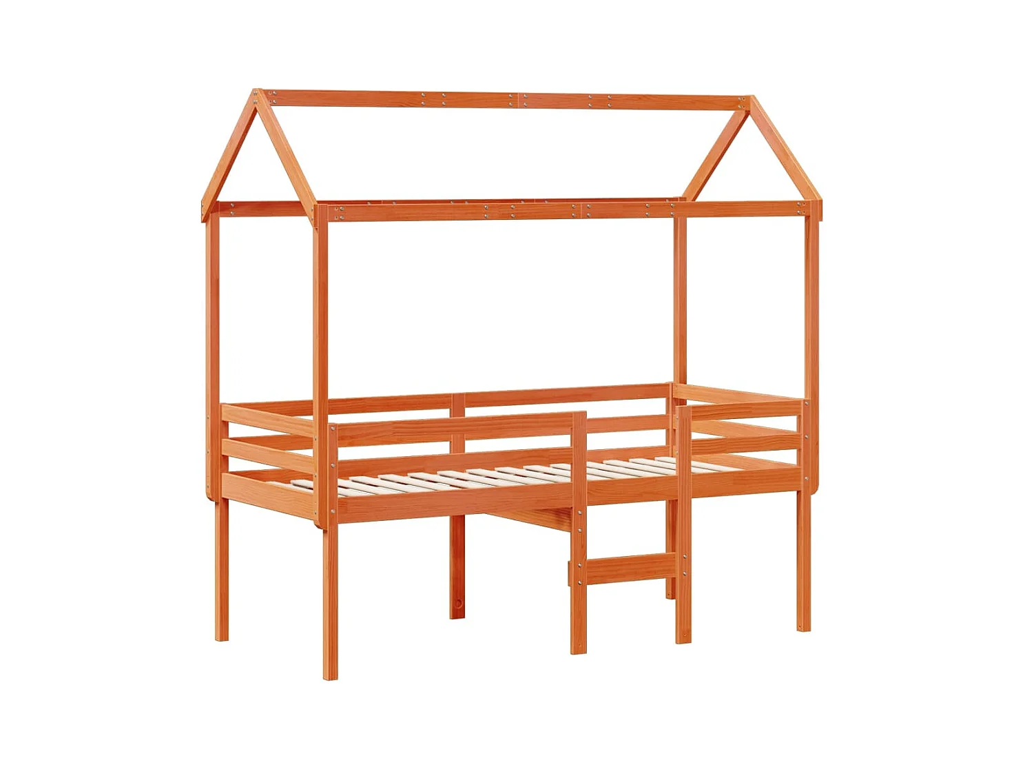 Cama alta sin colchón marrón cera 80x200 cm madera maciza de pino
