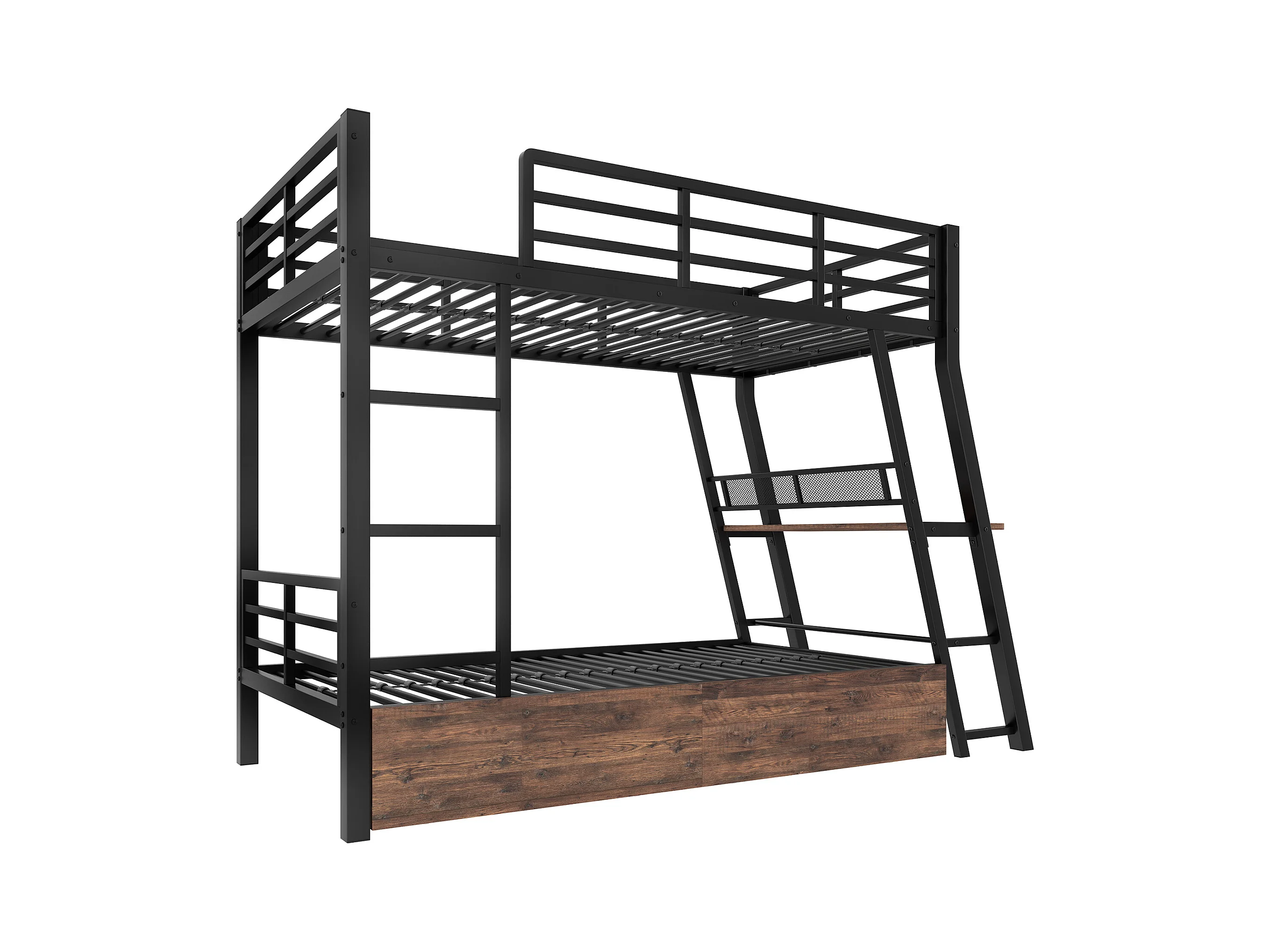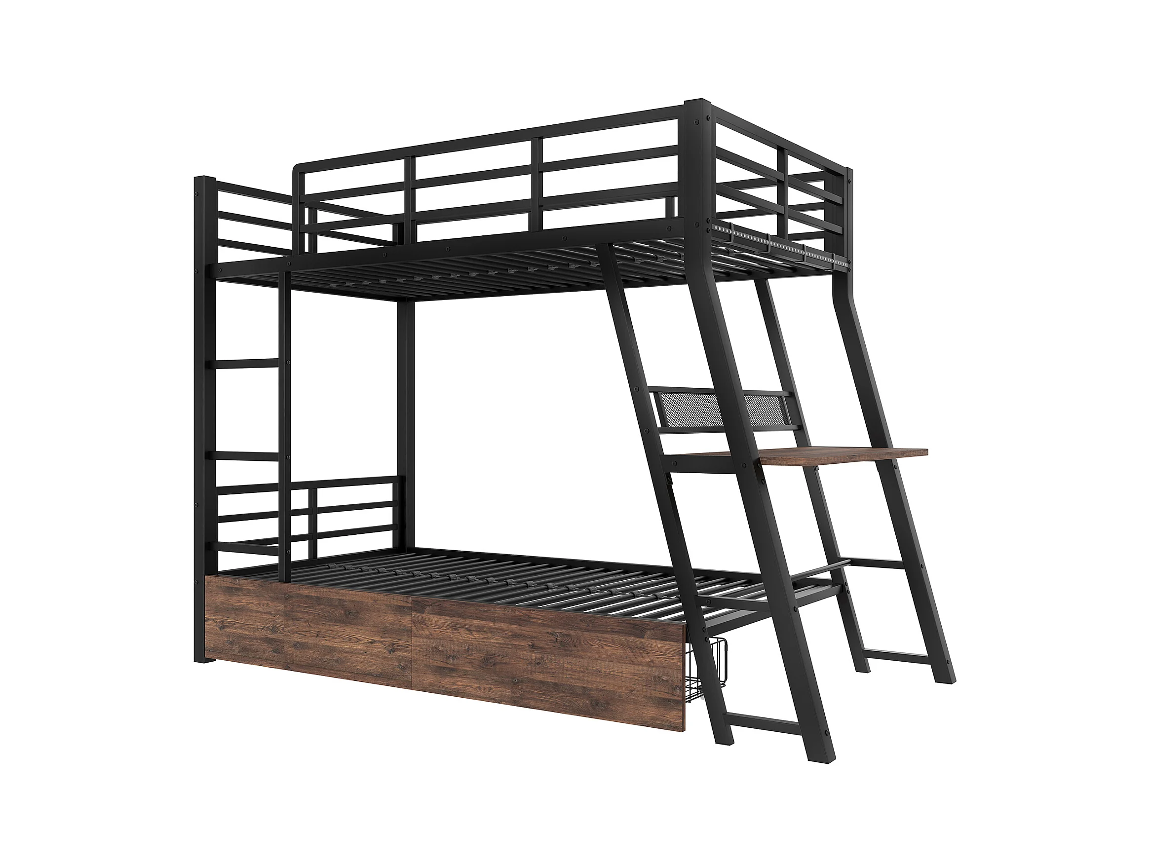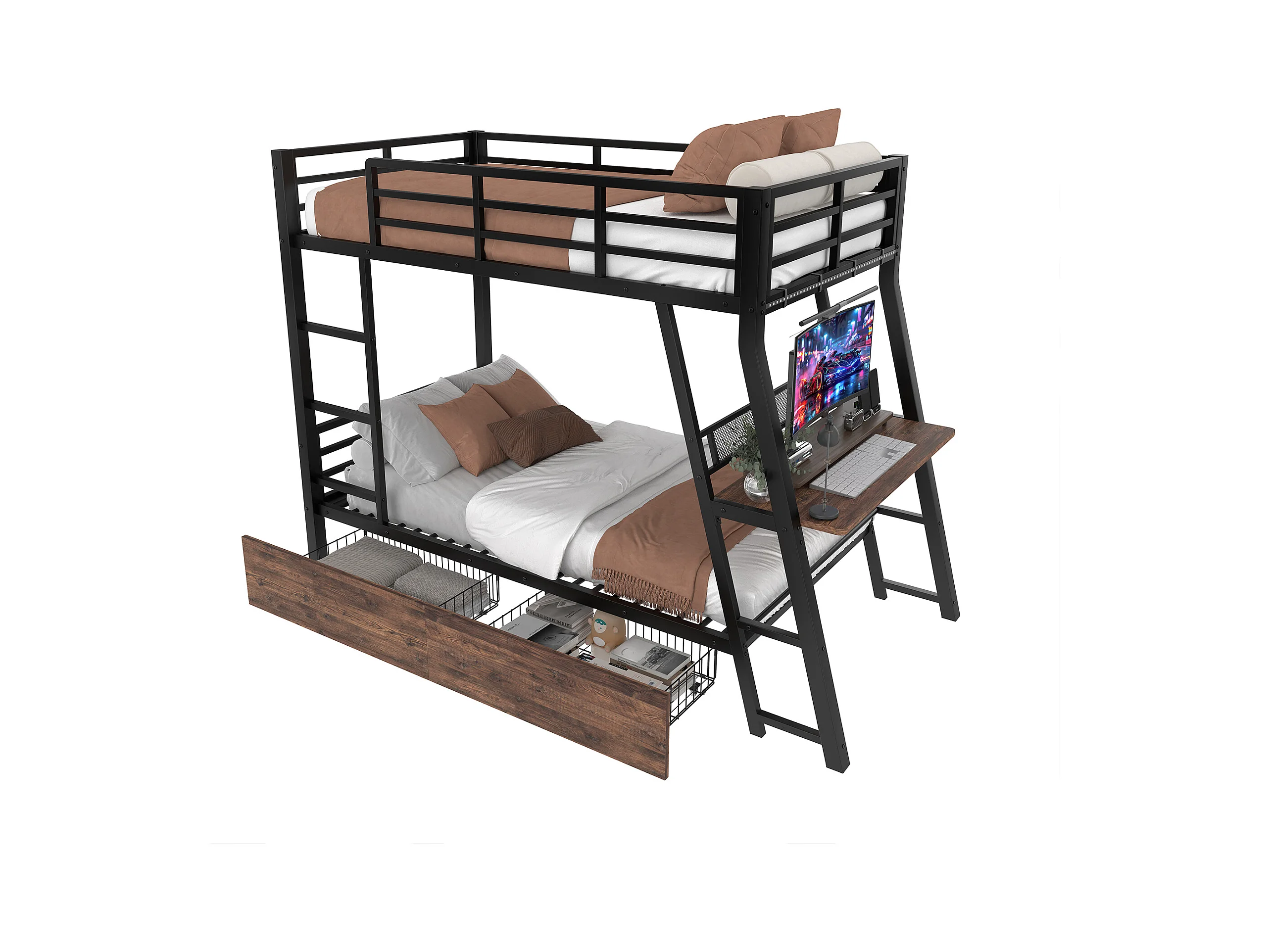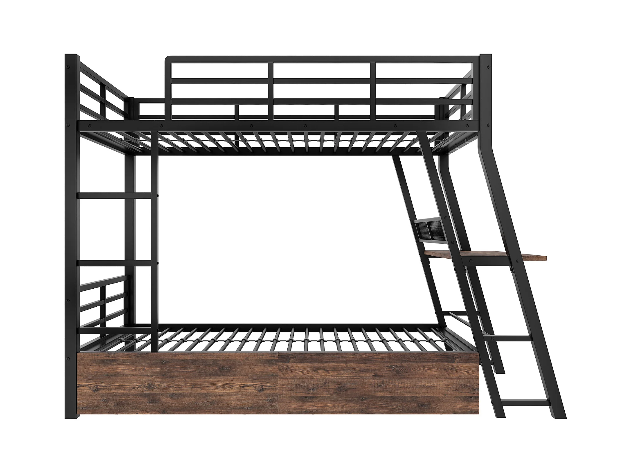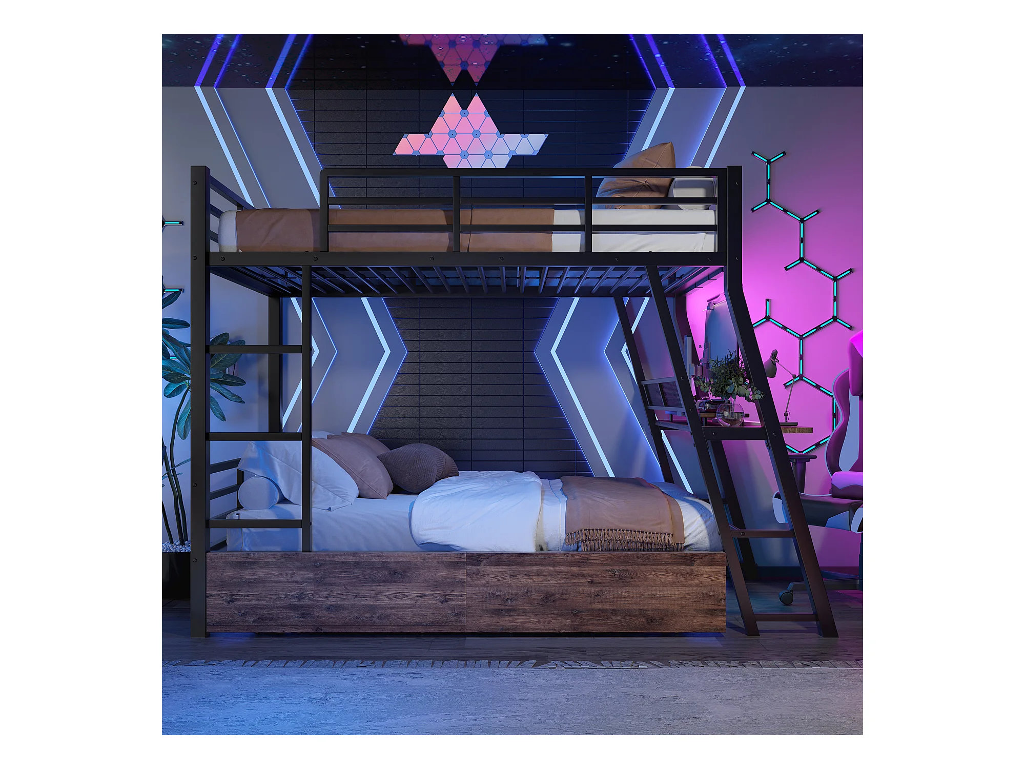 Litera 90x200 cm - con iluminación LED - con 2 cajones - con rampa + escalera - con escritorio - negro
