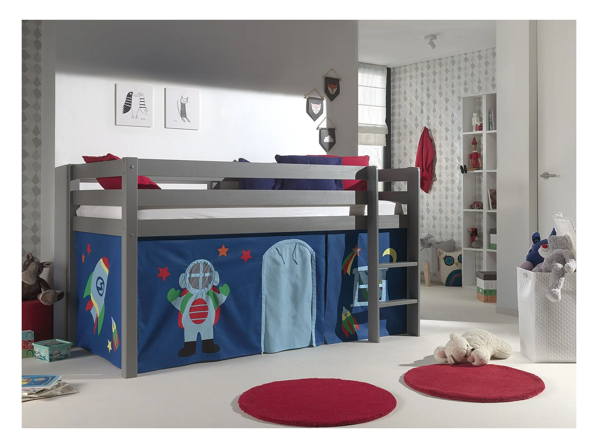 Cama entresuelo 90x200 cm con tienda y 3 bolsillos contra pino macizo gris Pino