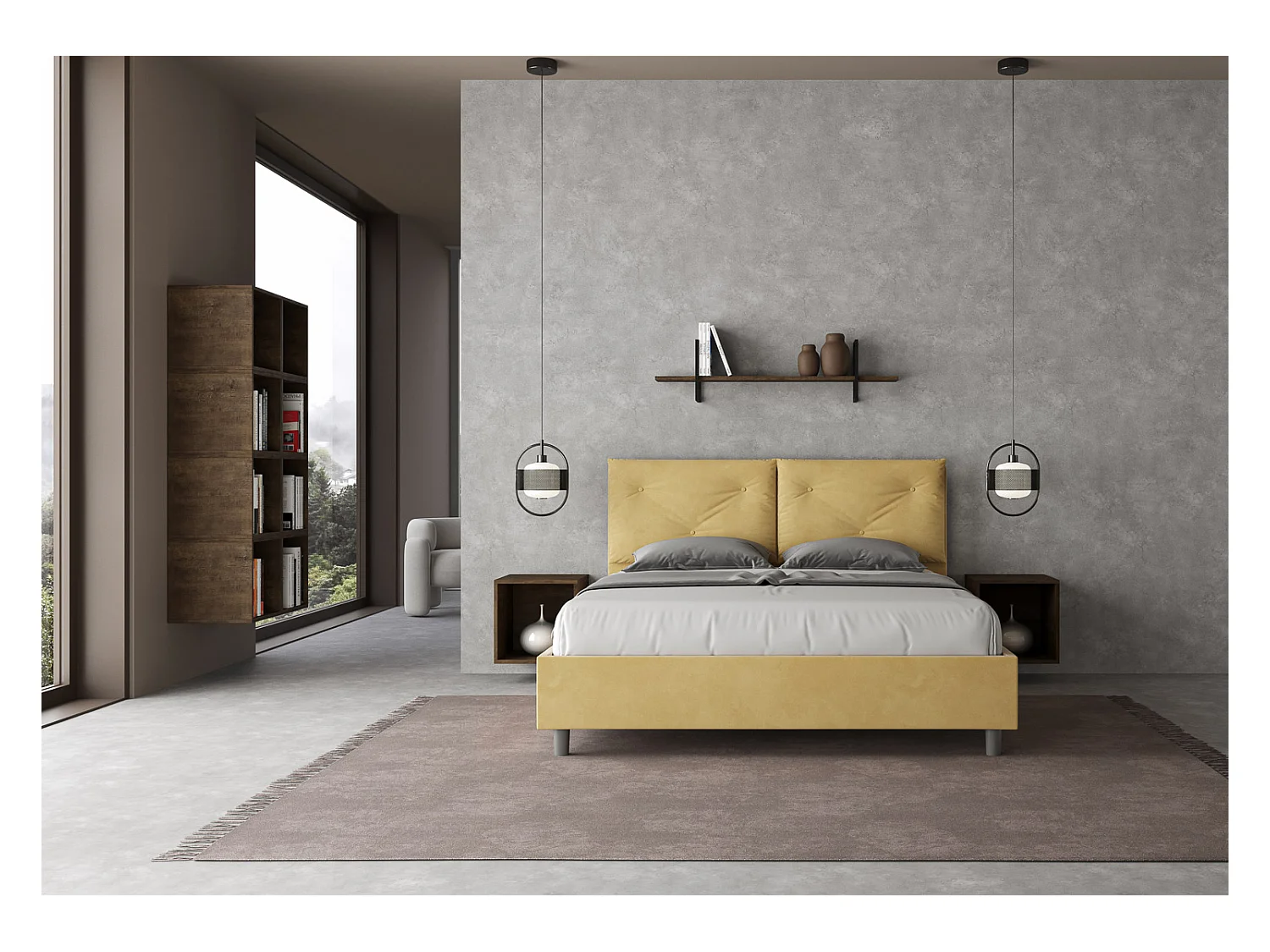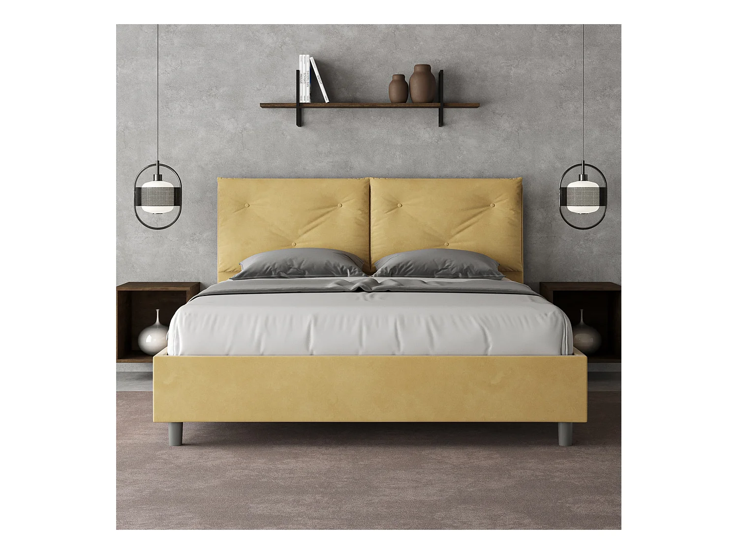Cama Appia con base acolchada 160x190 en microfibra ocre
