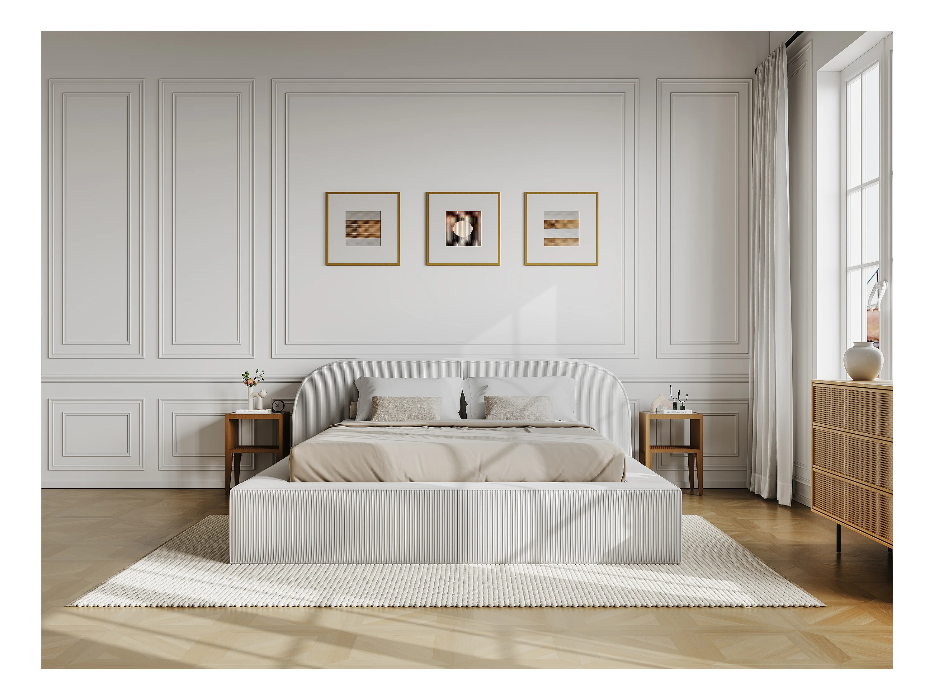 Cama arcón 180 x 200 cm - Terciopelo acanalado - Crema - Con colchón - LIRABA de Maison Céphy