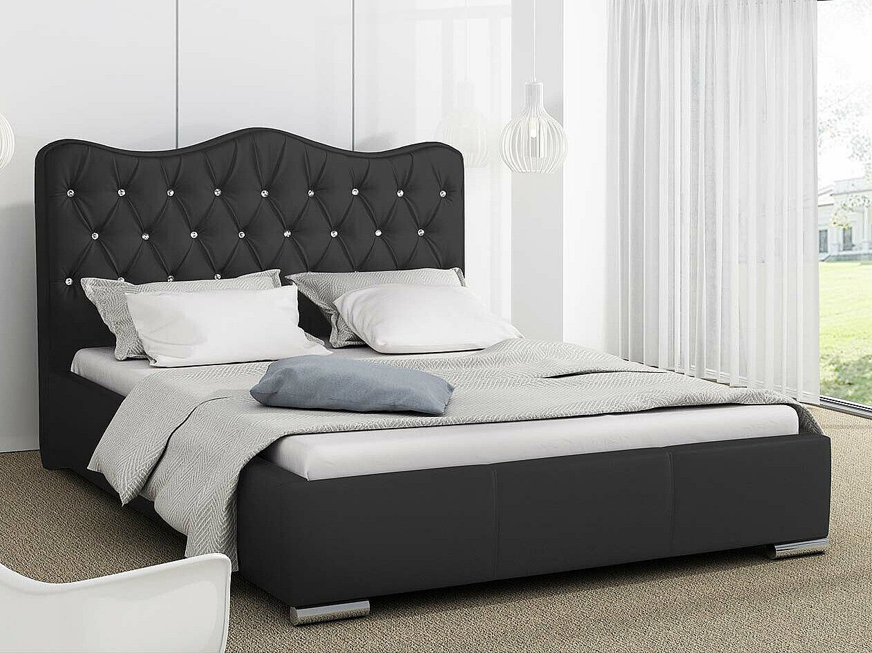 Cama Baltimore 141, Doble, Negro, Tapiz, Somieres, 200x218x100cm