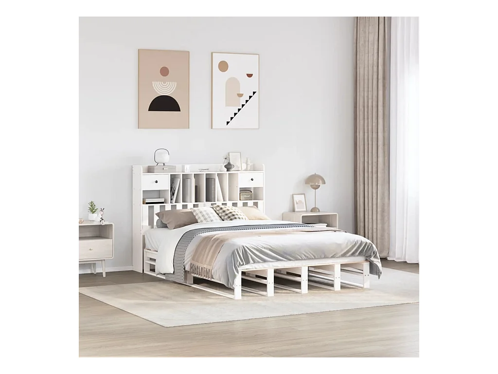 Cama biblioteca sin colchón blanca 140x190 cm madera maciza de pino