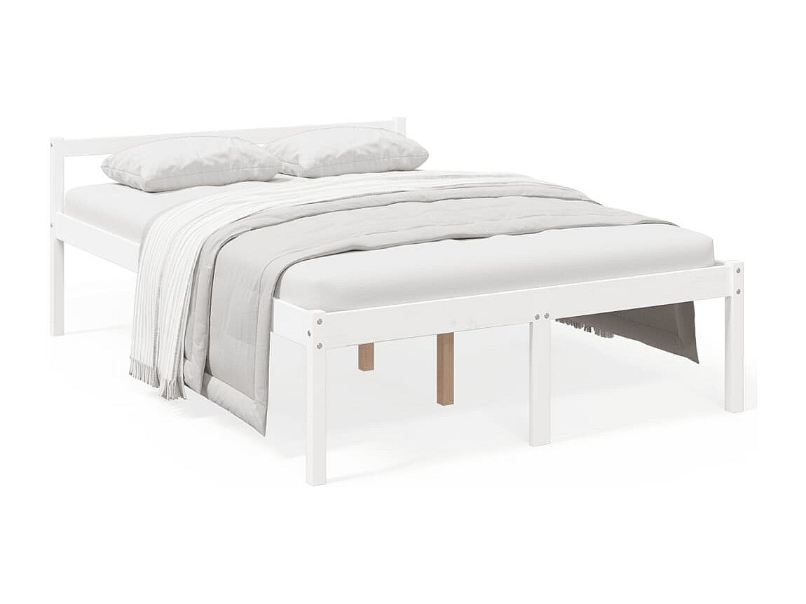 Cama -135x190 cm con cabecero madera pino blanco YOE52921