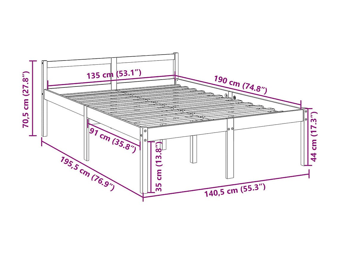 Estructura de cama de madera maciza de pino blanco 135x190 cm