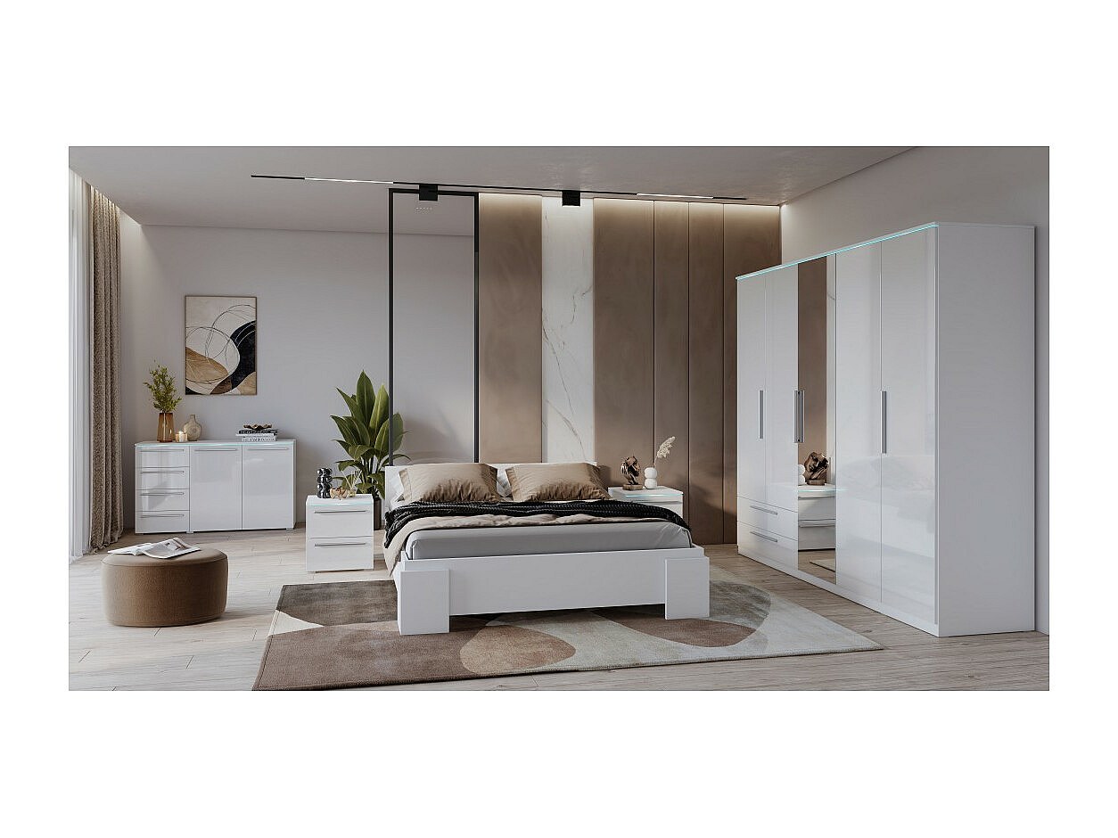 Cama BOMBAY – 180x200 cm – Diseño blanco – Somier no incluido – Estilo contemporáneo