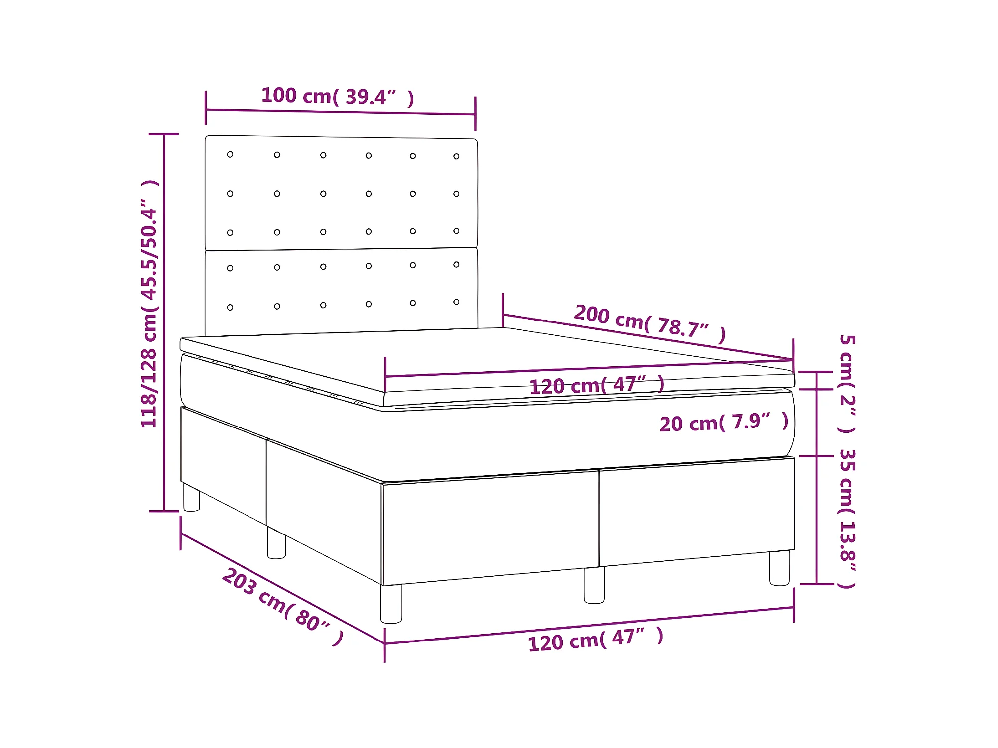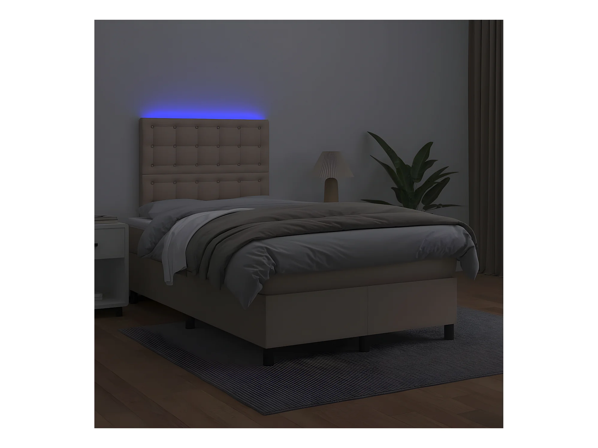 Cama box spring colchón LED cuero sintético capuchino 120x200cm