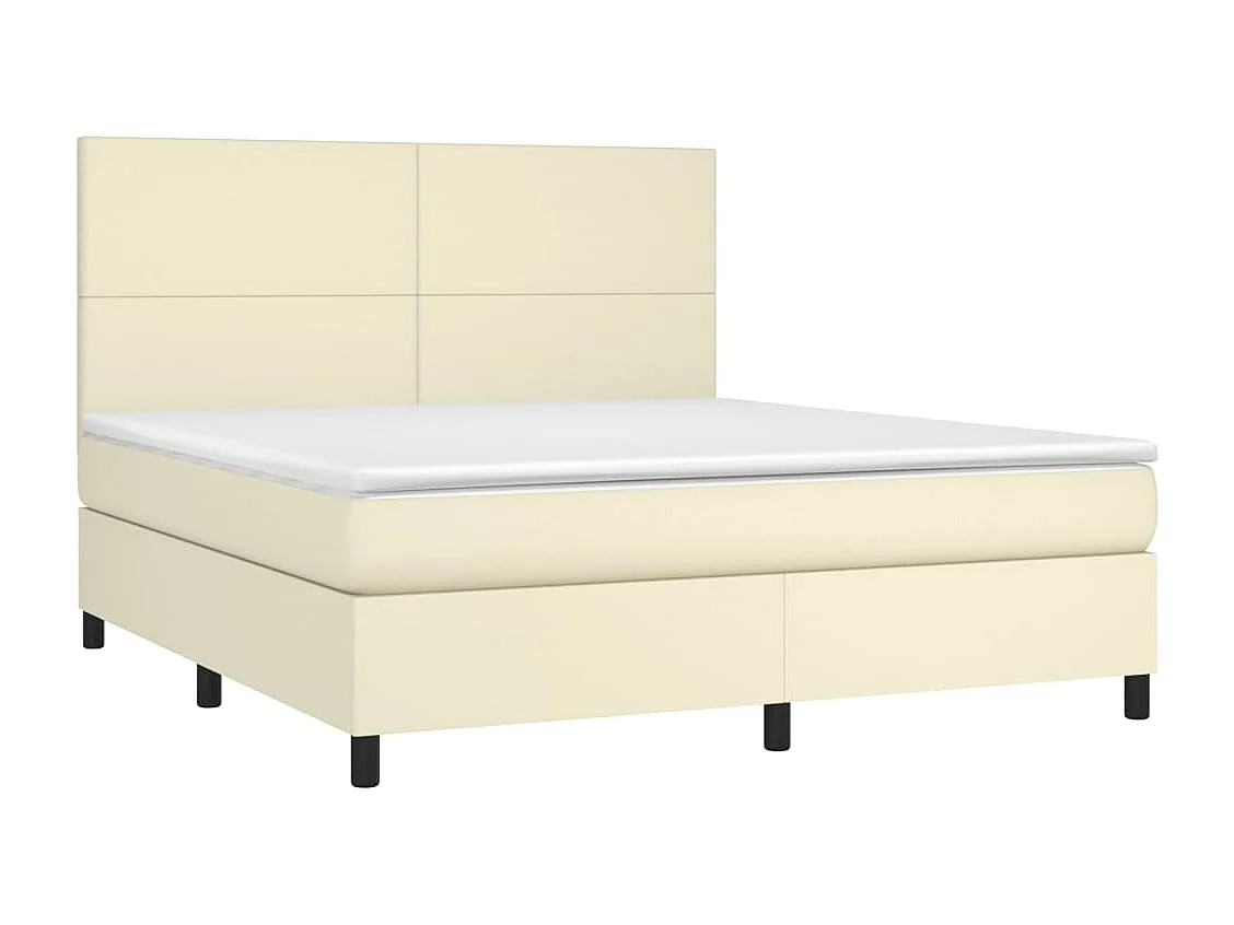 Cama box spring colchón y LED cuero sintético crema 180x200 cm