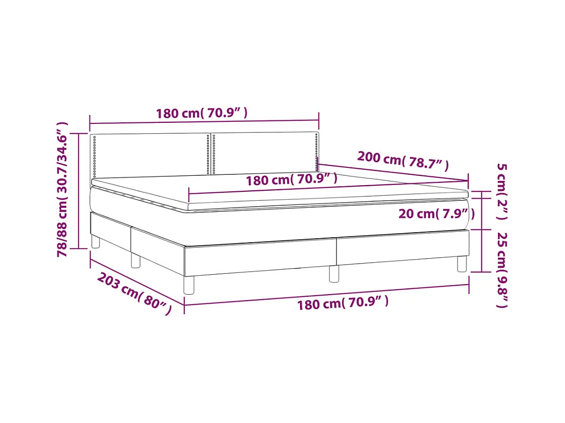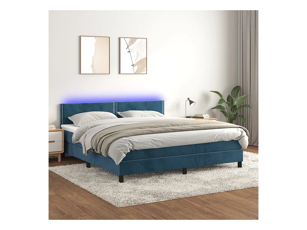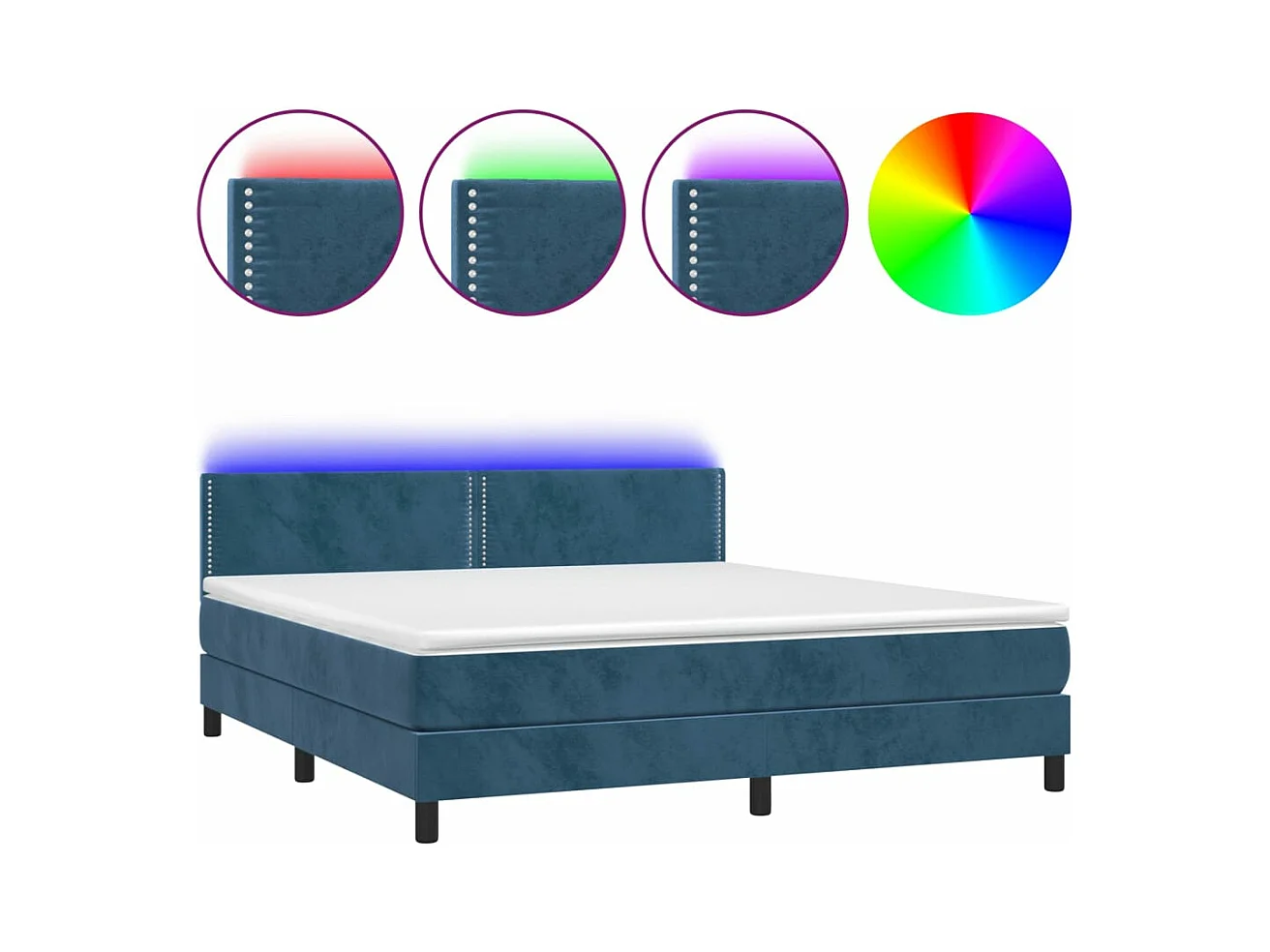 Cama box spring colchón y LED terciopelo azul oscuro 180x200 cm